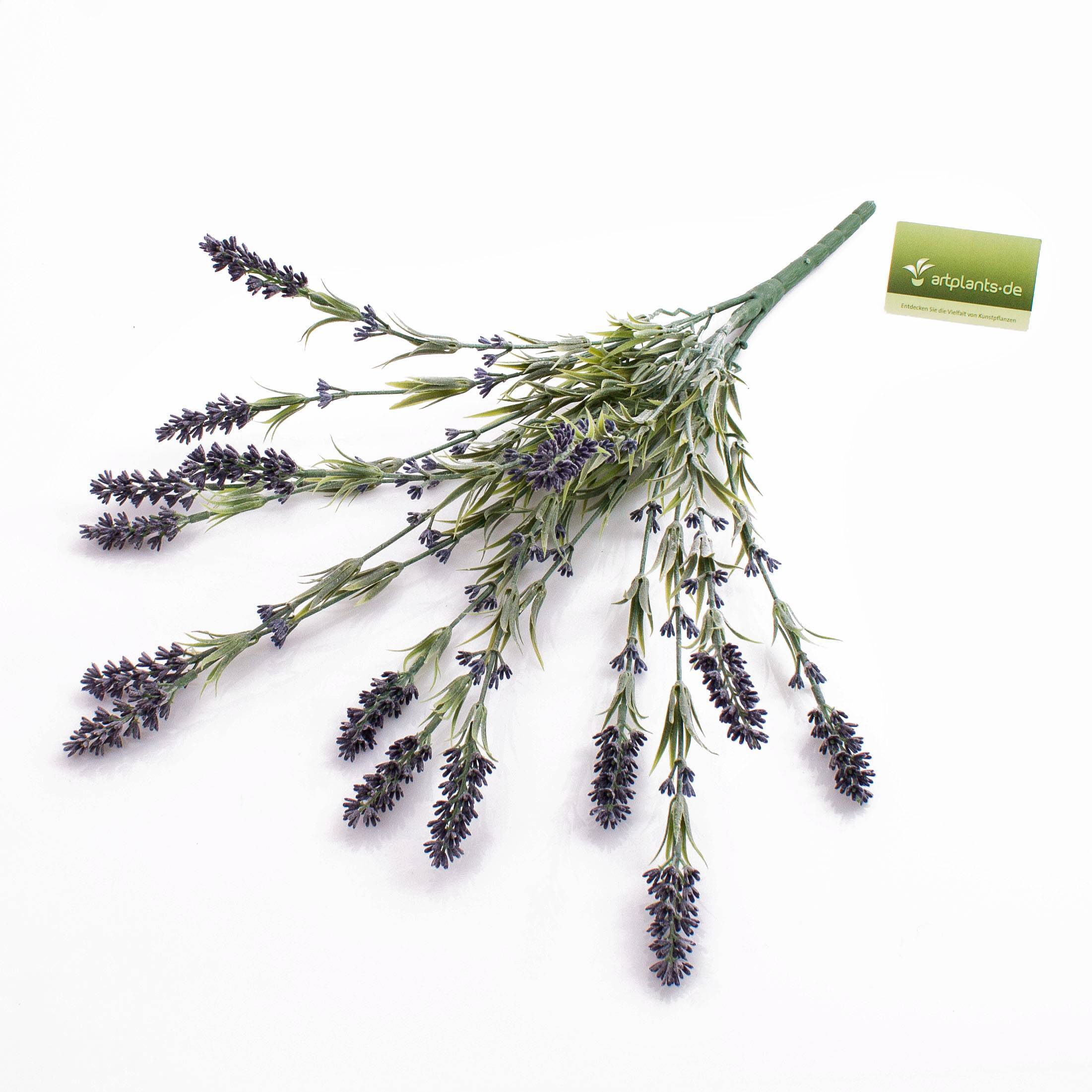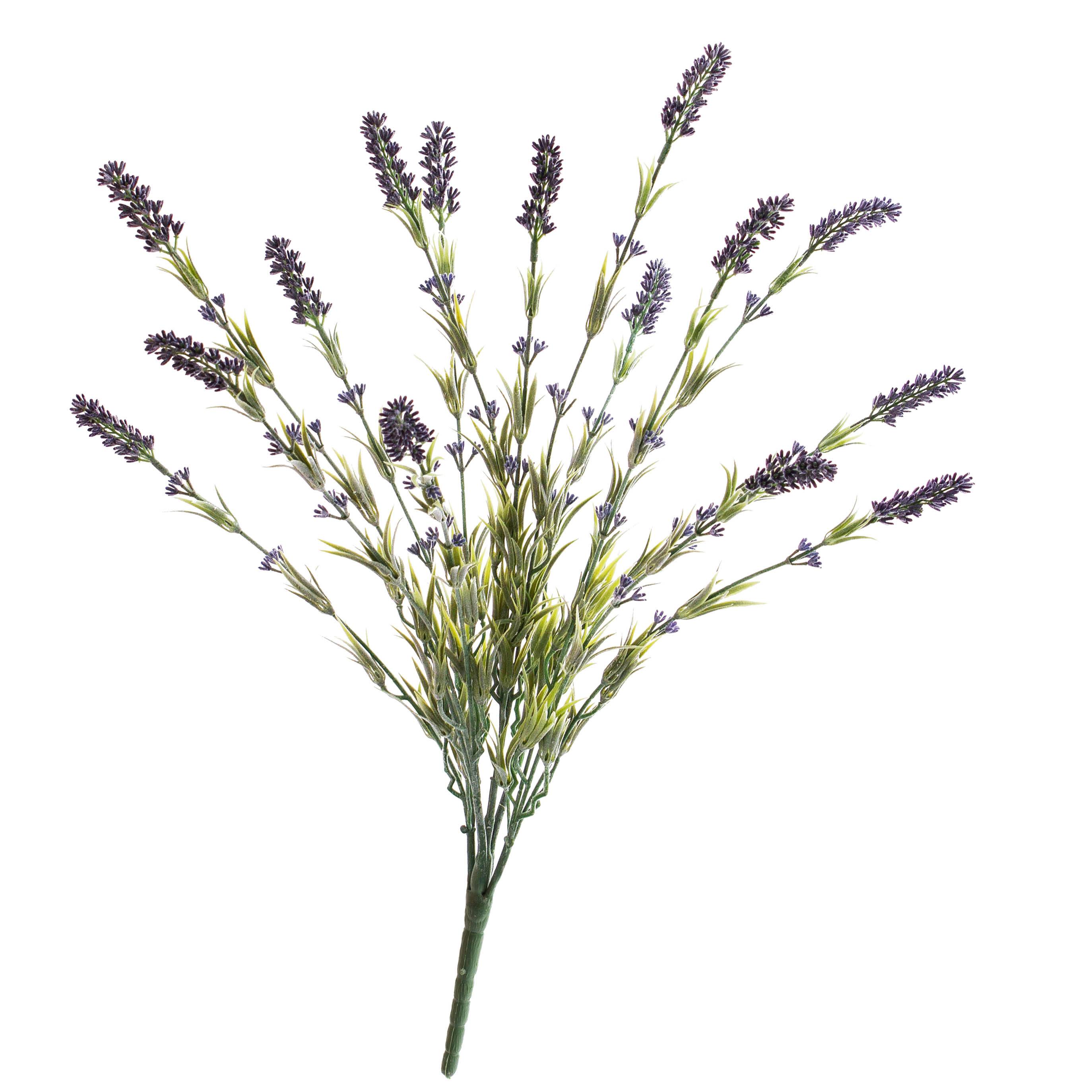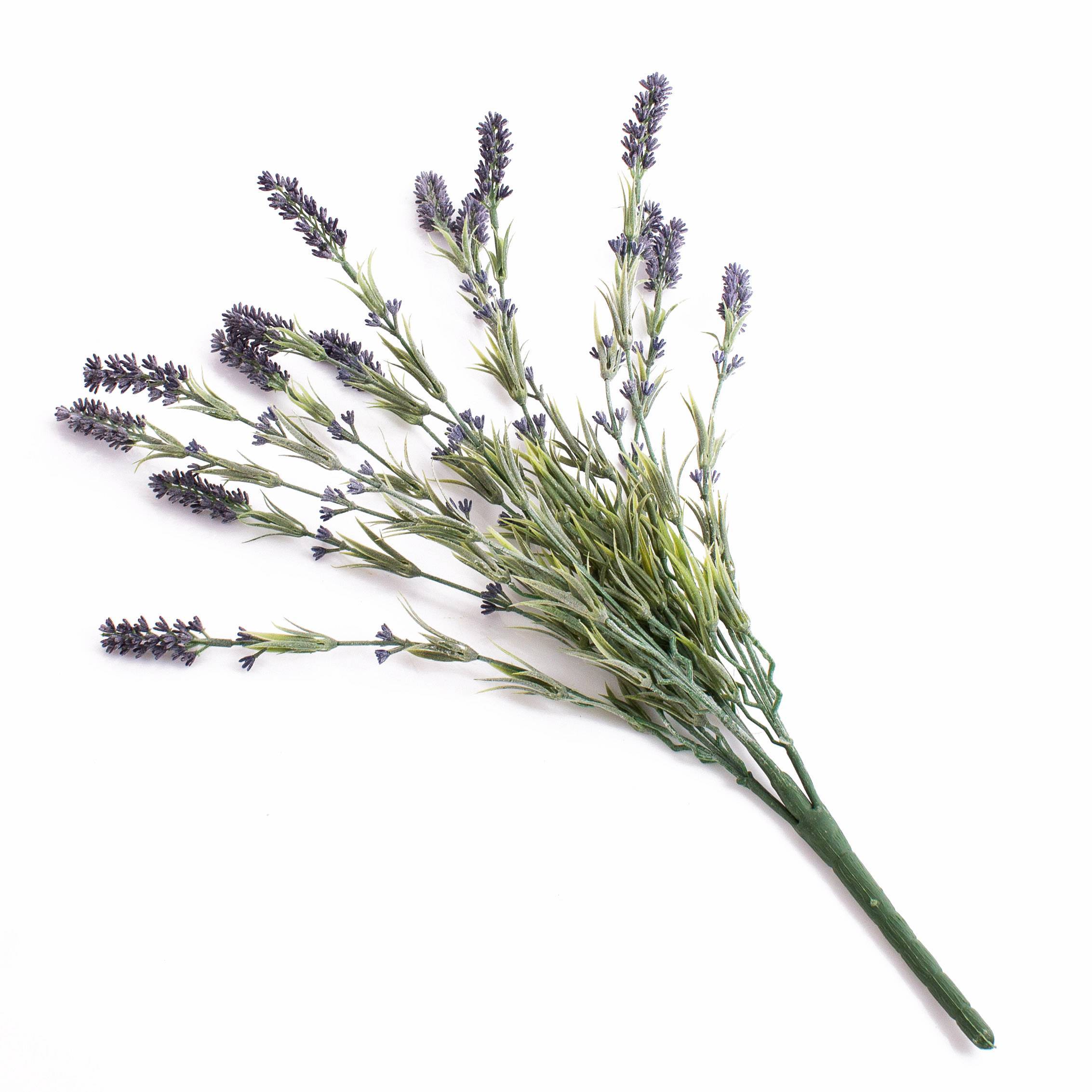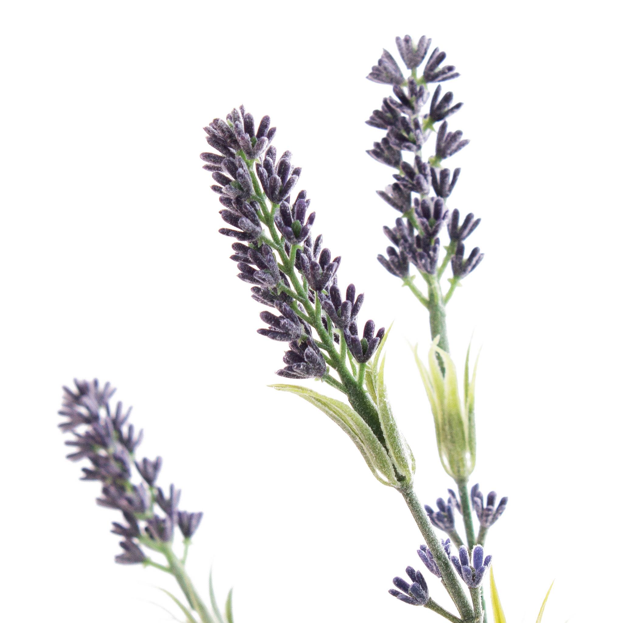 Arbusto de lavanda con 13 panojas en diferentes alturas en una vara de ajuste. La lavanda artificial posee una altura aproximada de 60 cm.