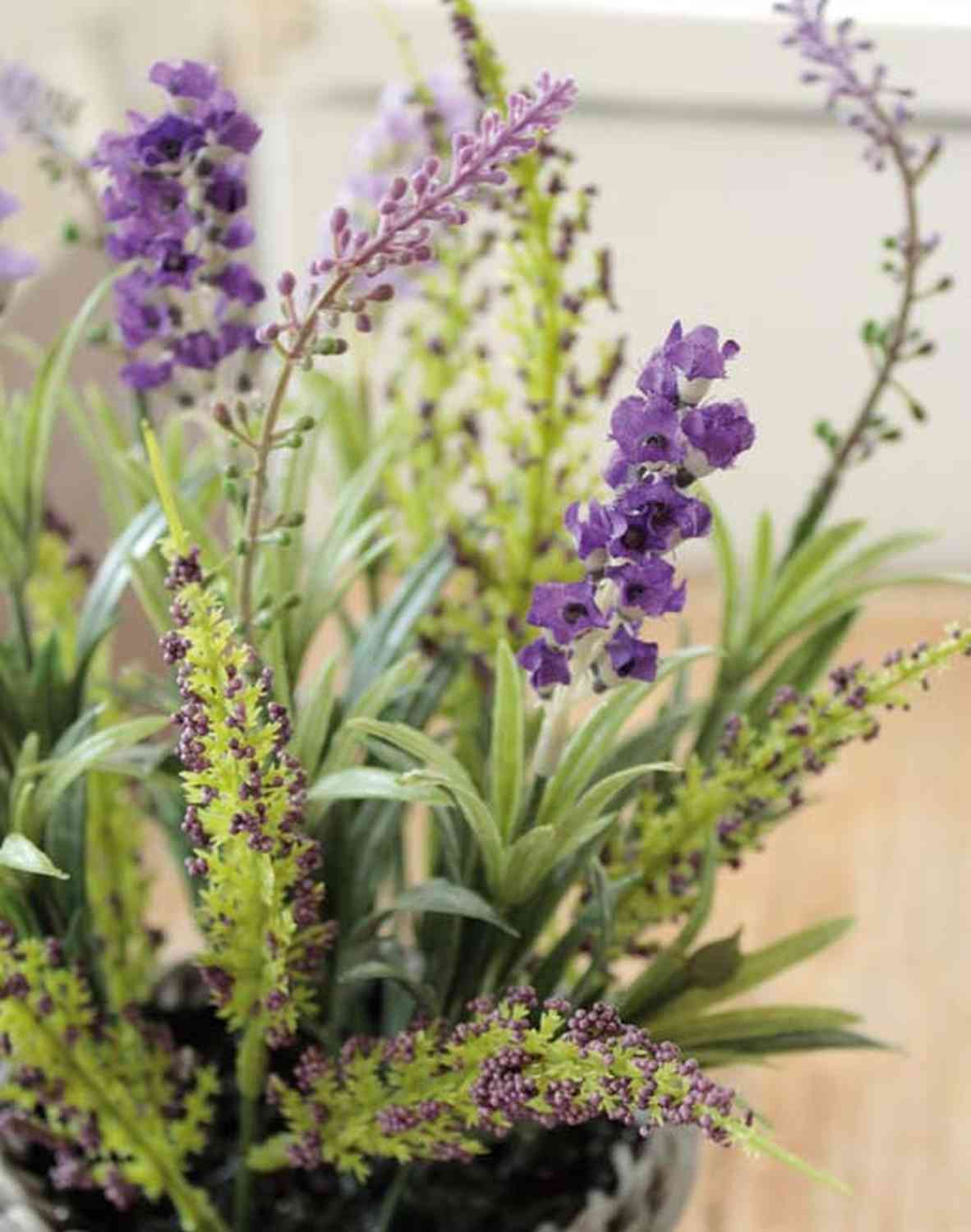 - Planta artificial de lavanda ideal, por ejemplo, para decorar una mesa, colocar en el alféizar de ventana o como decoración de escaparate