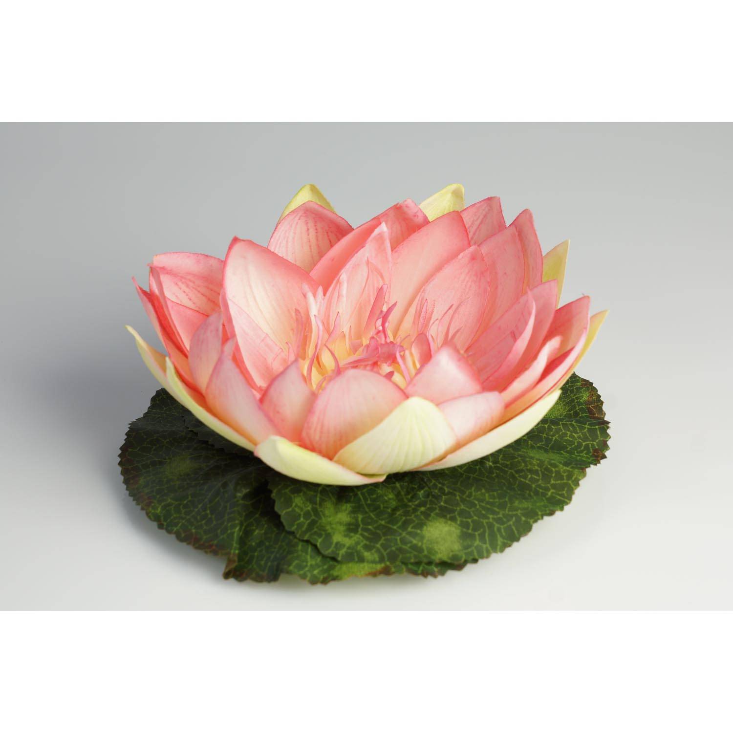 Nenúfar artificial de color rosa con un diámetro exterior de aproximadamente 20 cm. El loto hecho de fibra textil es el objeto ornamental ideal para todo tipo de decoración referente a elementos relacionados con el agua.