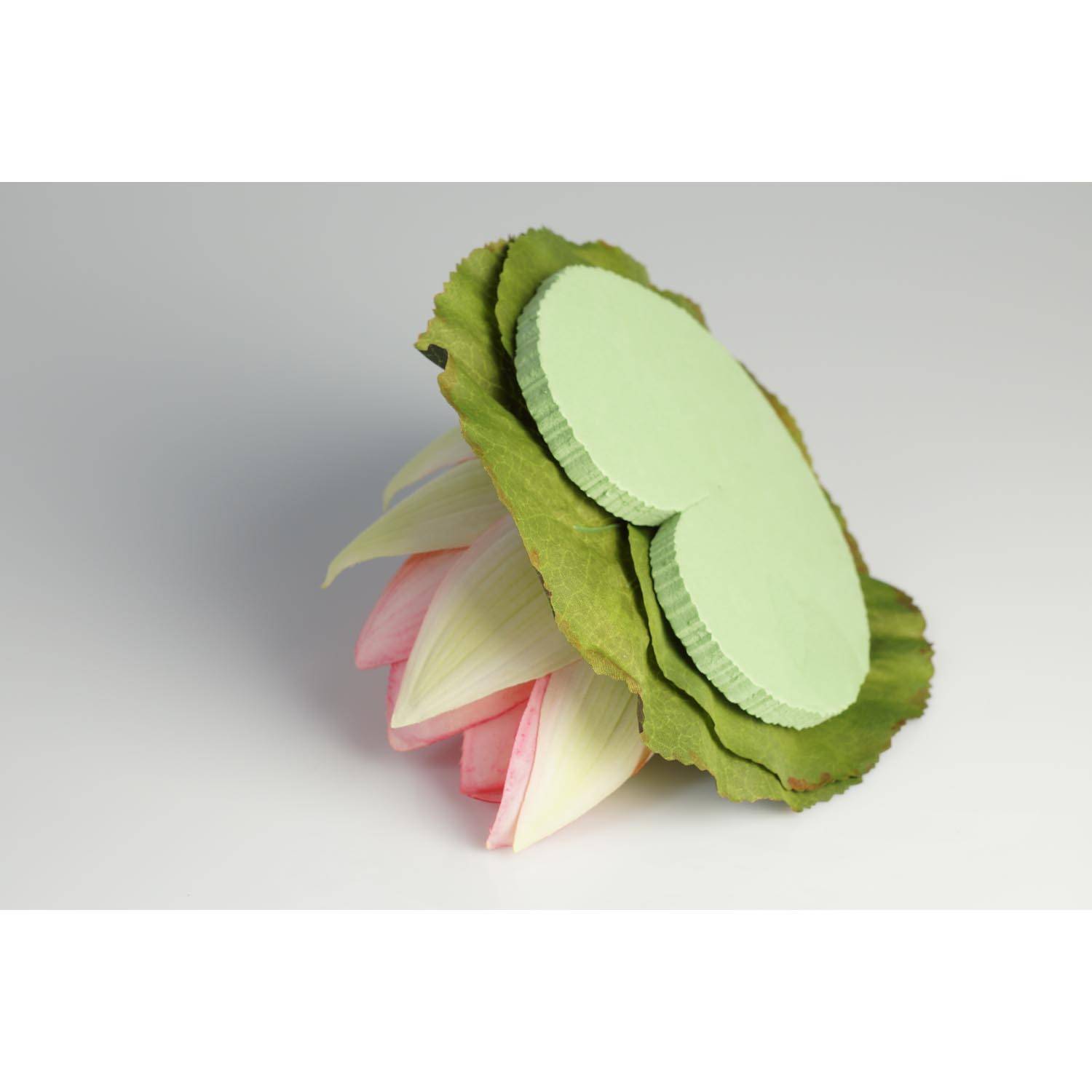 - 2 hojas flotantes (aprox. 16 x 20 cm) con forma redondeada, con vetas de color verde claro sobre un fondo verde oscuro
