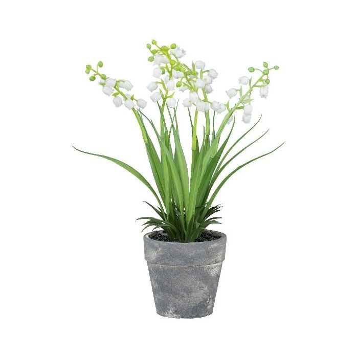 Lirio de los valles artificial ZORKLEM en maceta decorativa, blanca, 22 cm