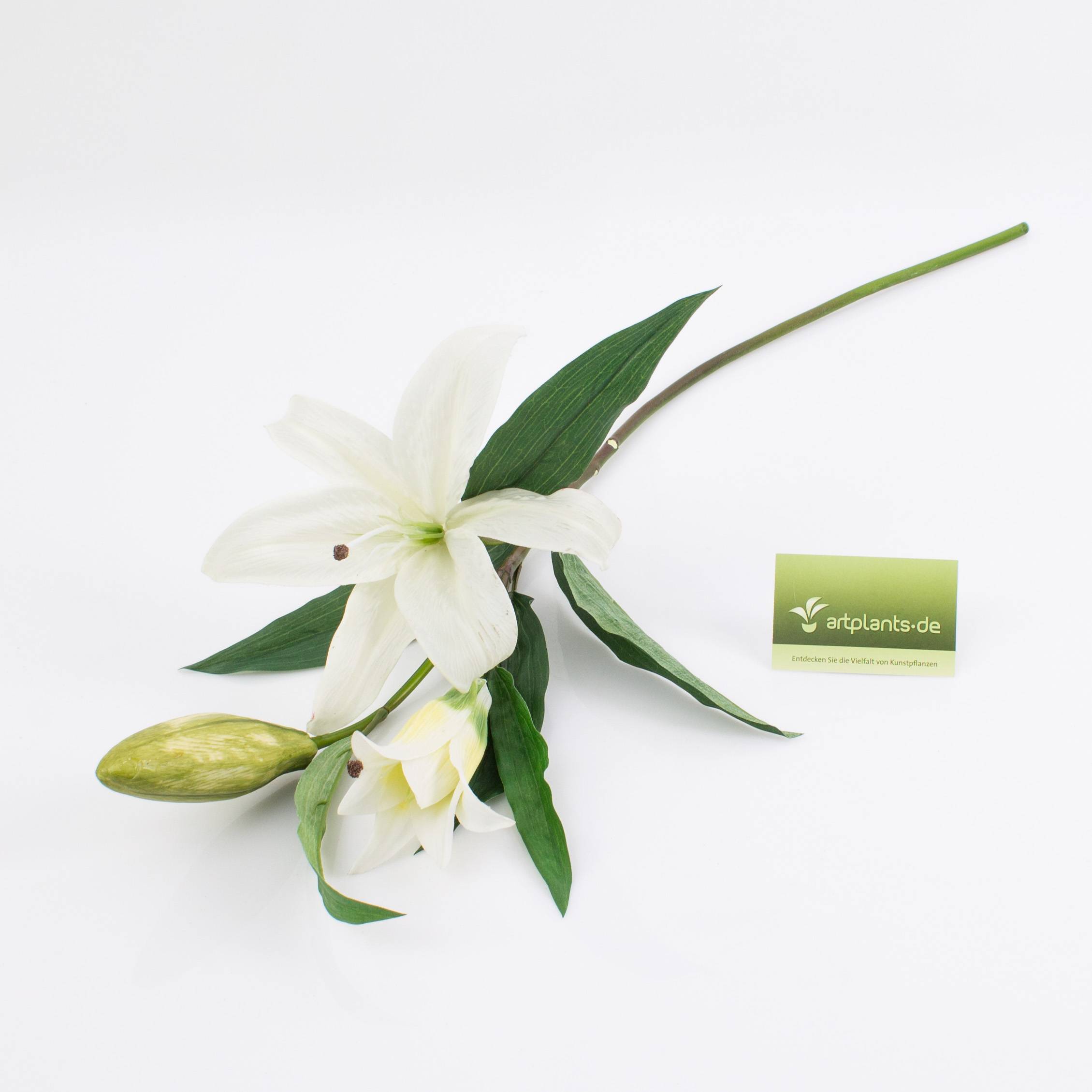 Lirio de tigre con flor de color crema y blanco (tacto natural) y 6 hojas textiles. La azucena artificial mide un total de aprox. 80 cm de largo y es adecuada como decoración individual.