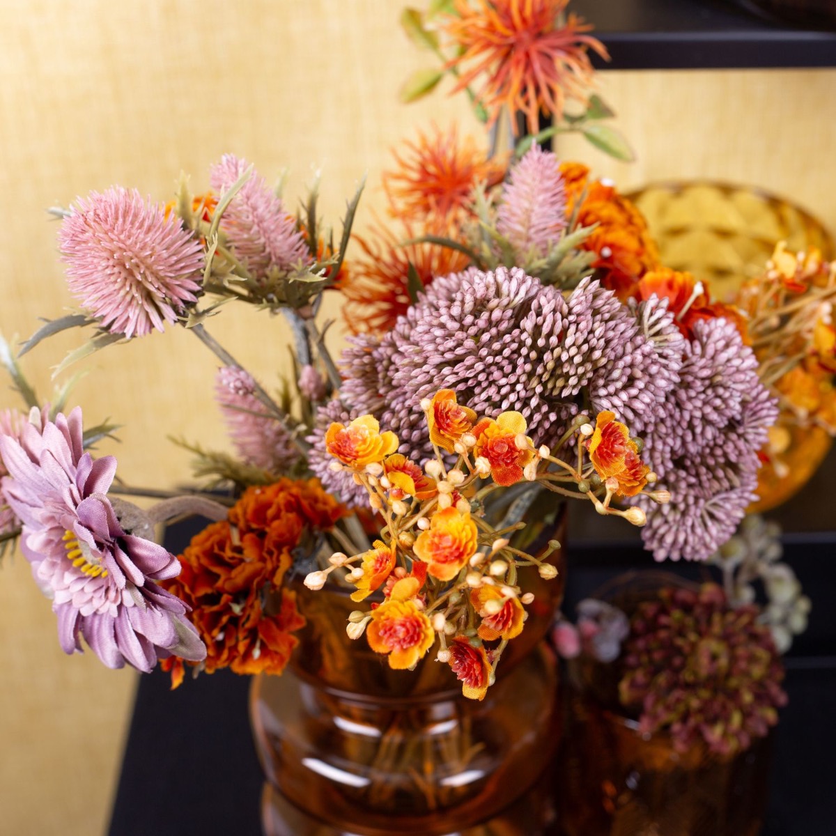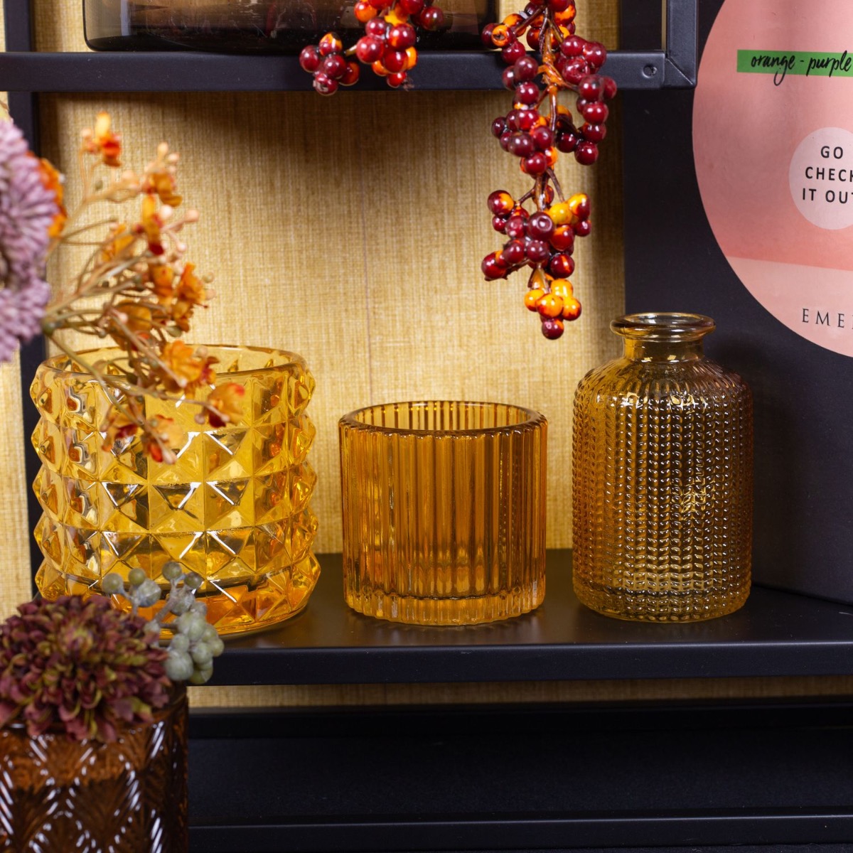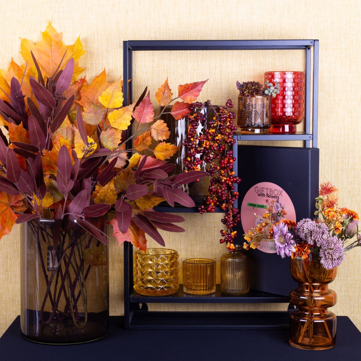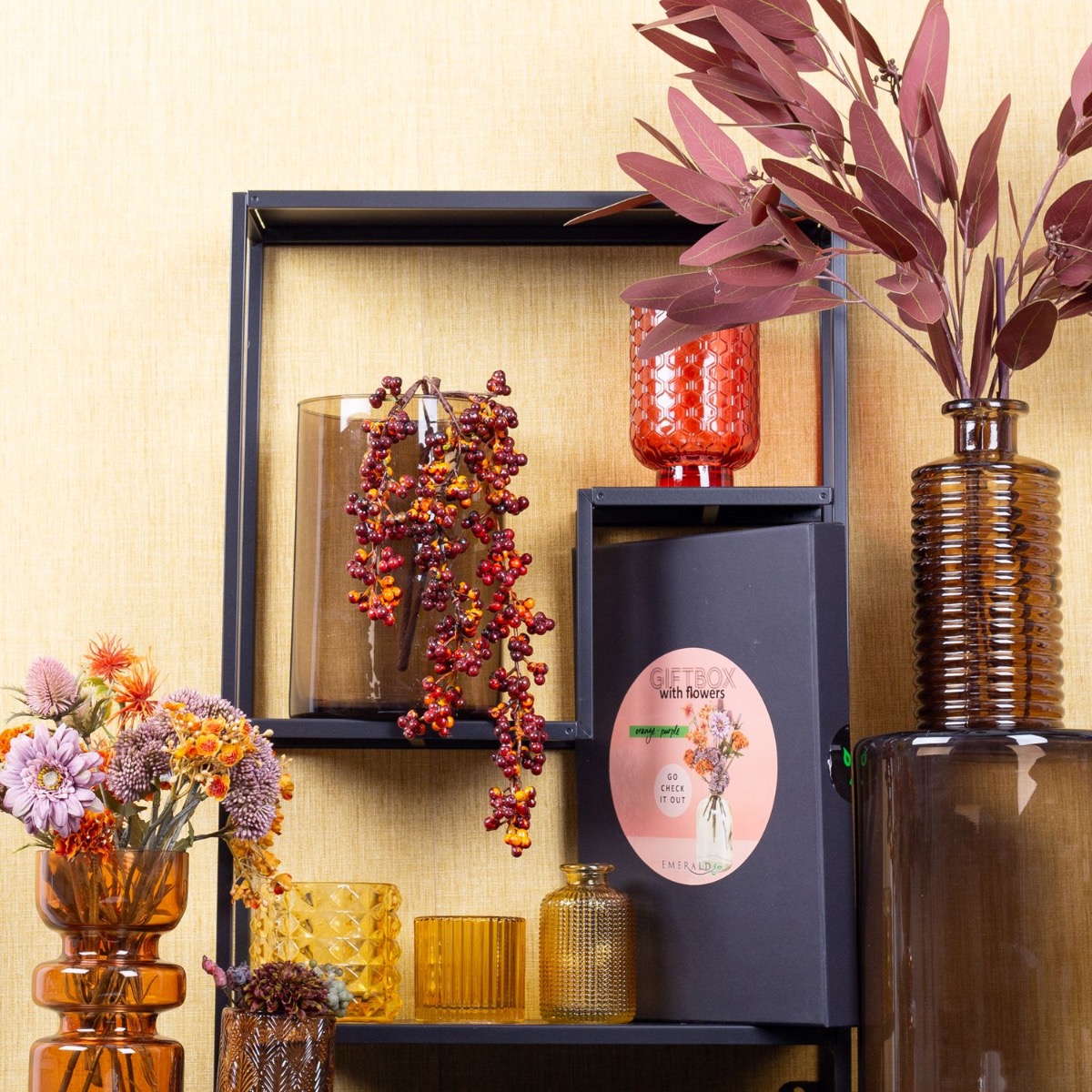 Rojo, marrón y amarillo! Ha llegado el final del verano y florecen las últimas flores. ¡Es hora de una decoración fresca! Un bonito ramillete DIY de Emerald adorna el jarrón marrón y naranja. En nuestra gran selección de botellas y tarros de colores, hemos podido combinar fácilmente los bonitos tonos otoñales. Amarillo brillante, naranja cálido, rojo vibrante y marrón intenso. Estos son los colores del otoño. Compra el look!