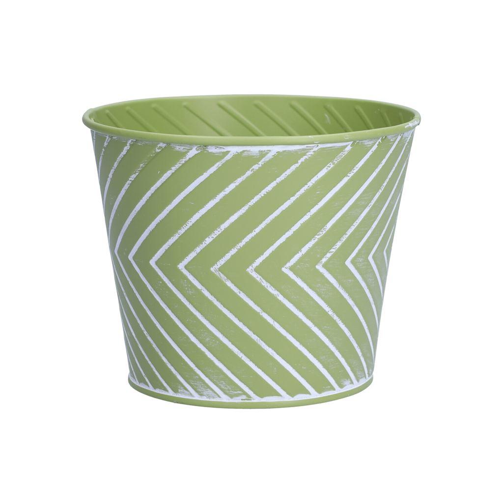 Maceta CENDRINE zinc, patrón de líneas, verde, 9,3 cm, Ø 11,5 cm