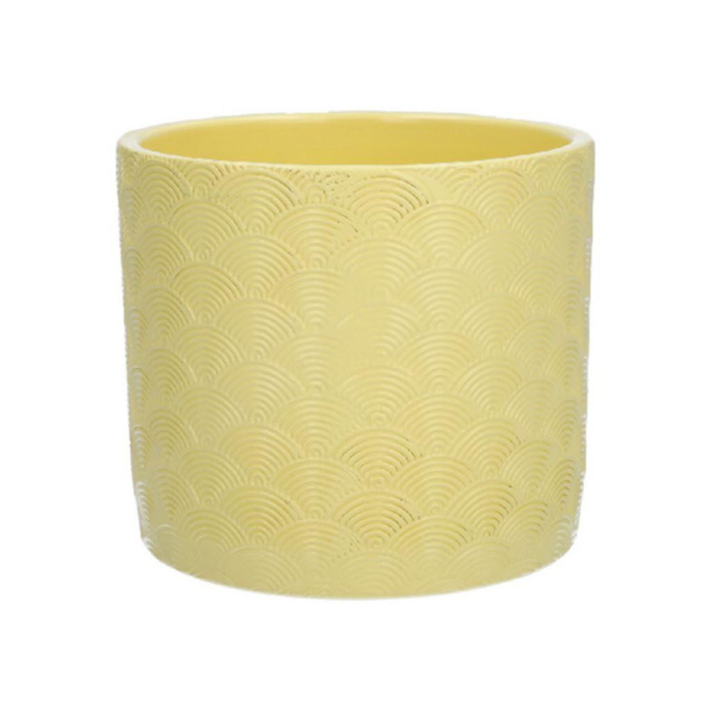 Maceta de cerámica FERDINANTA con diseño, amarillo mate, 13,1 cm, Ø 15,5 cm