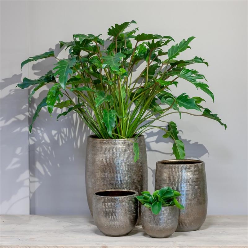 Maceta de cerámica ILSE con vetas, dorada, 22 cm, Ø 24 cm