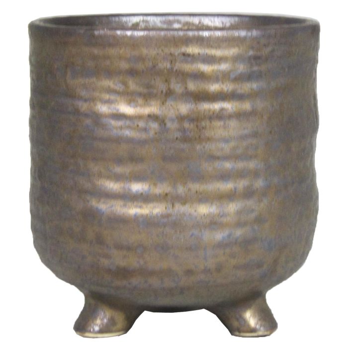 Maceta de cerámica OISIN con patas, con ranuras, bronce, 12,5cm, Ø11,5cm