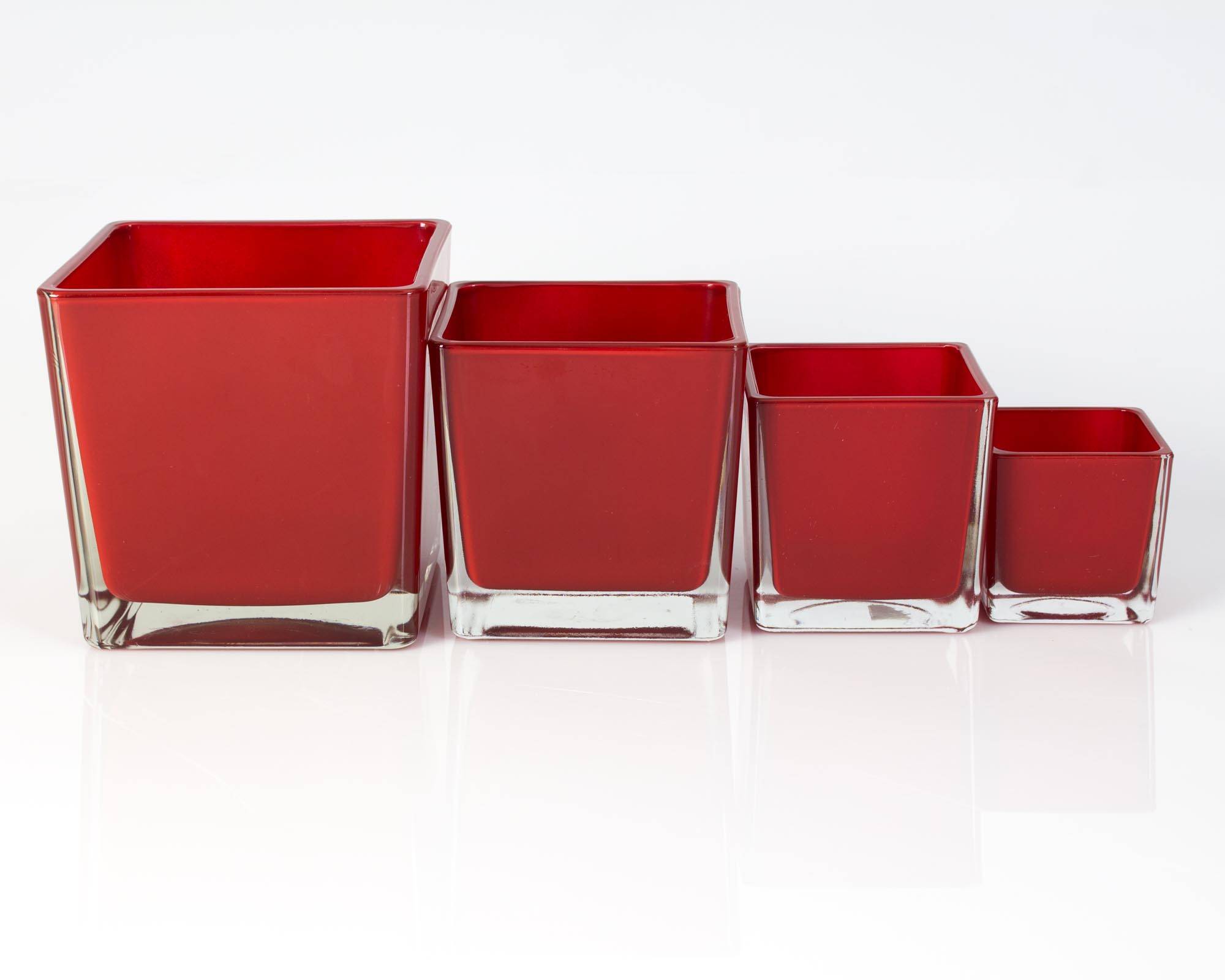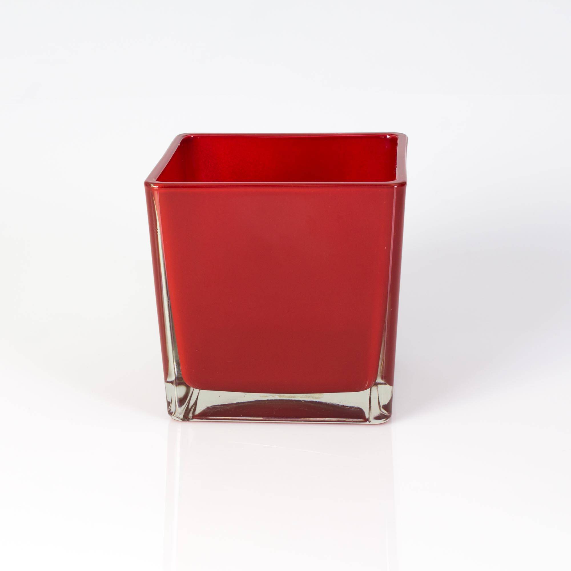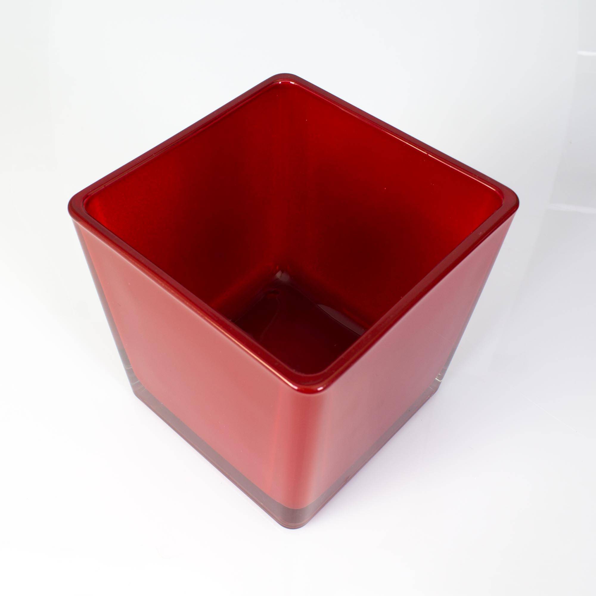 Maceta de cristal KIM EARTH, roja, 12x12x12cm