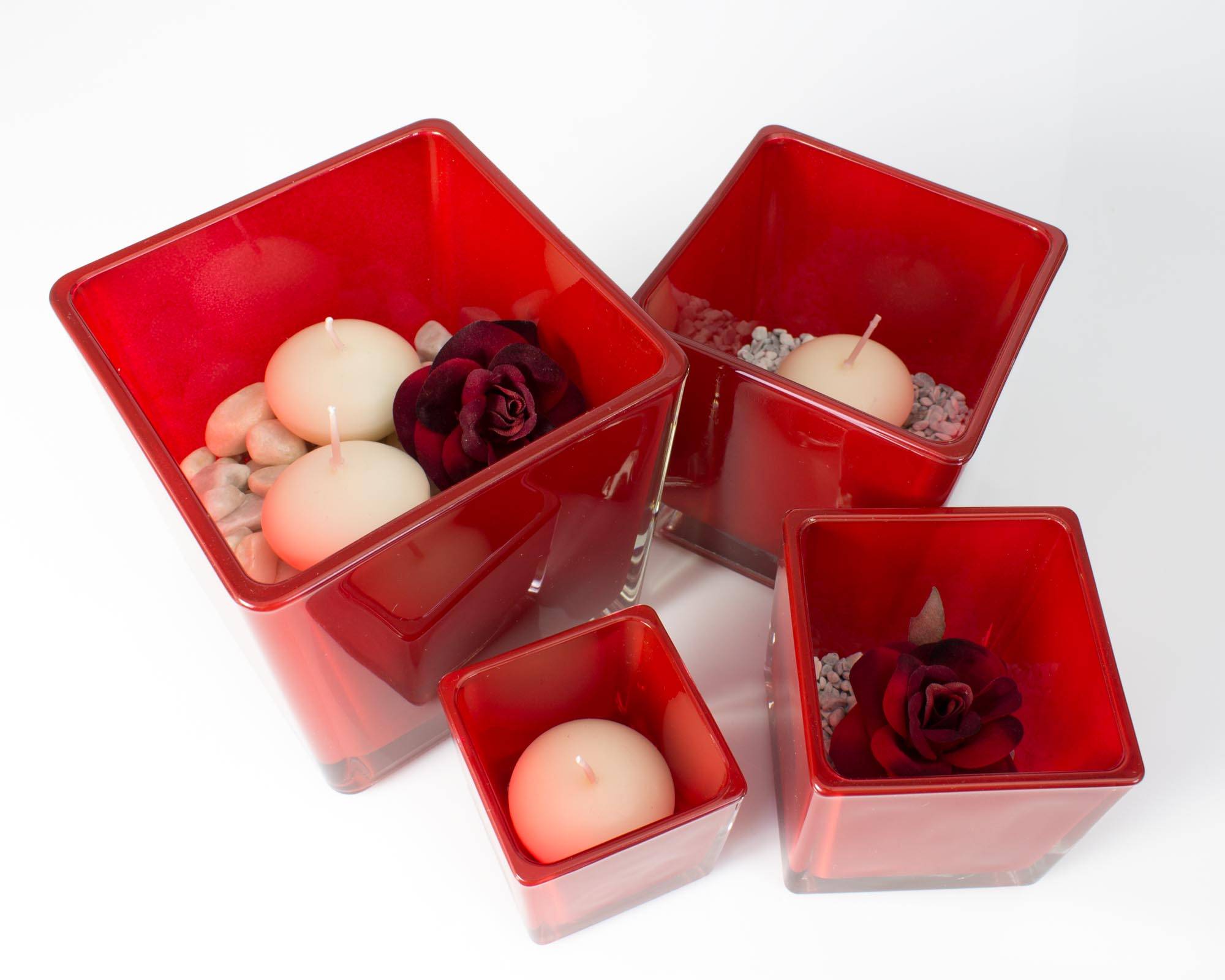 Maceta de cristal KIM EARTH, rojo, 10x10x10cm