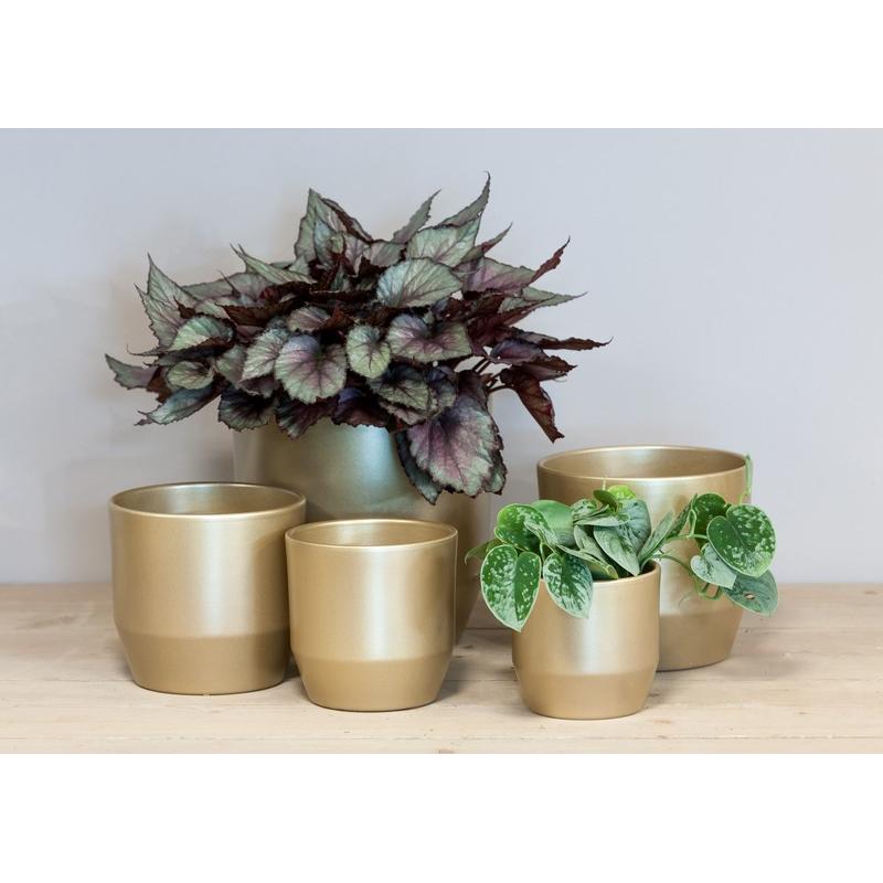 Maceta LENAS, cerámica, dorado perlado mate, 13,3 cm, Ø 13,5 cm