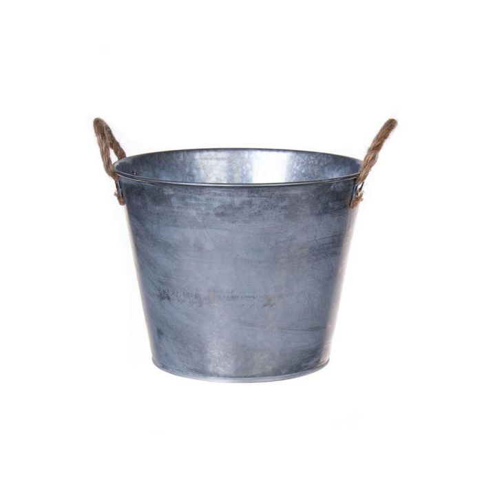 Maceta redonda BIMETO con asas, zinc, plateada, 18,5 cm, Ø 22,5 cm