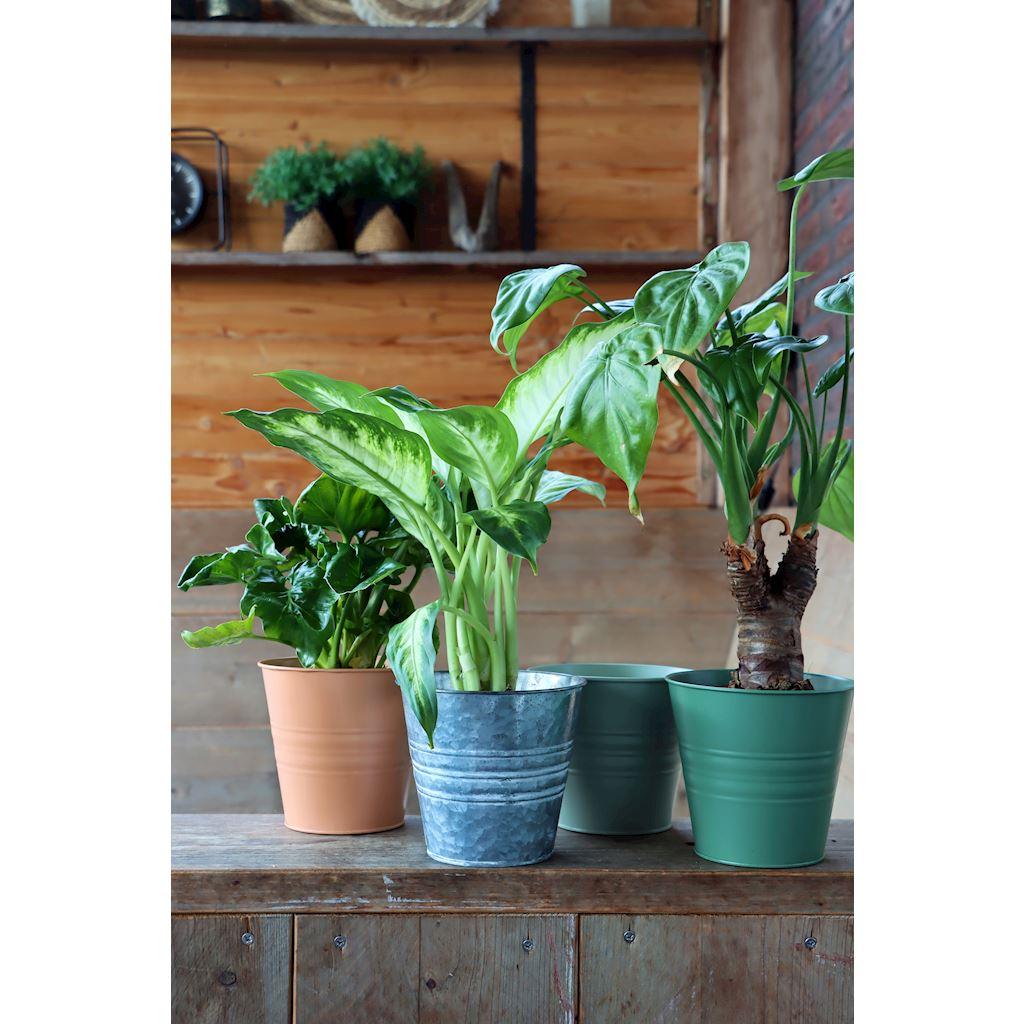 Maceta redonda MICOLATO con ranuras, zinc, terracota, 12 cm, Ø 13,5 cm