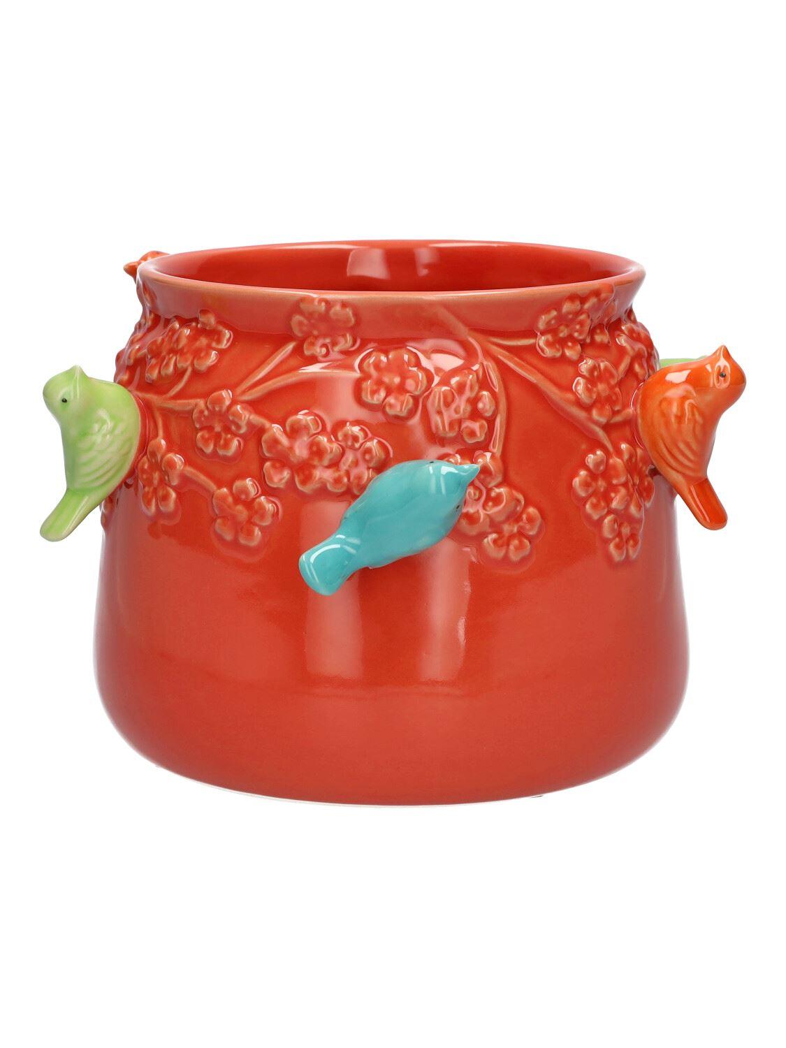 Macetero BIRDIE de cerámica, con pájaros en 3D, rojo-azul-verde-naranja, 11 cm, Ø 13,5 cm