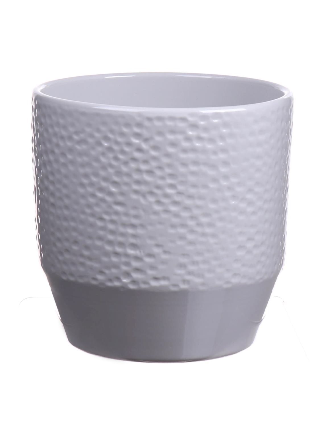 Macetero de cerámica BIHAM, diseño martillado, gris claro, 13,2cm, Ø13,5cm