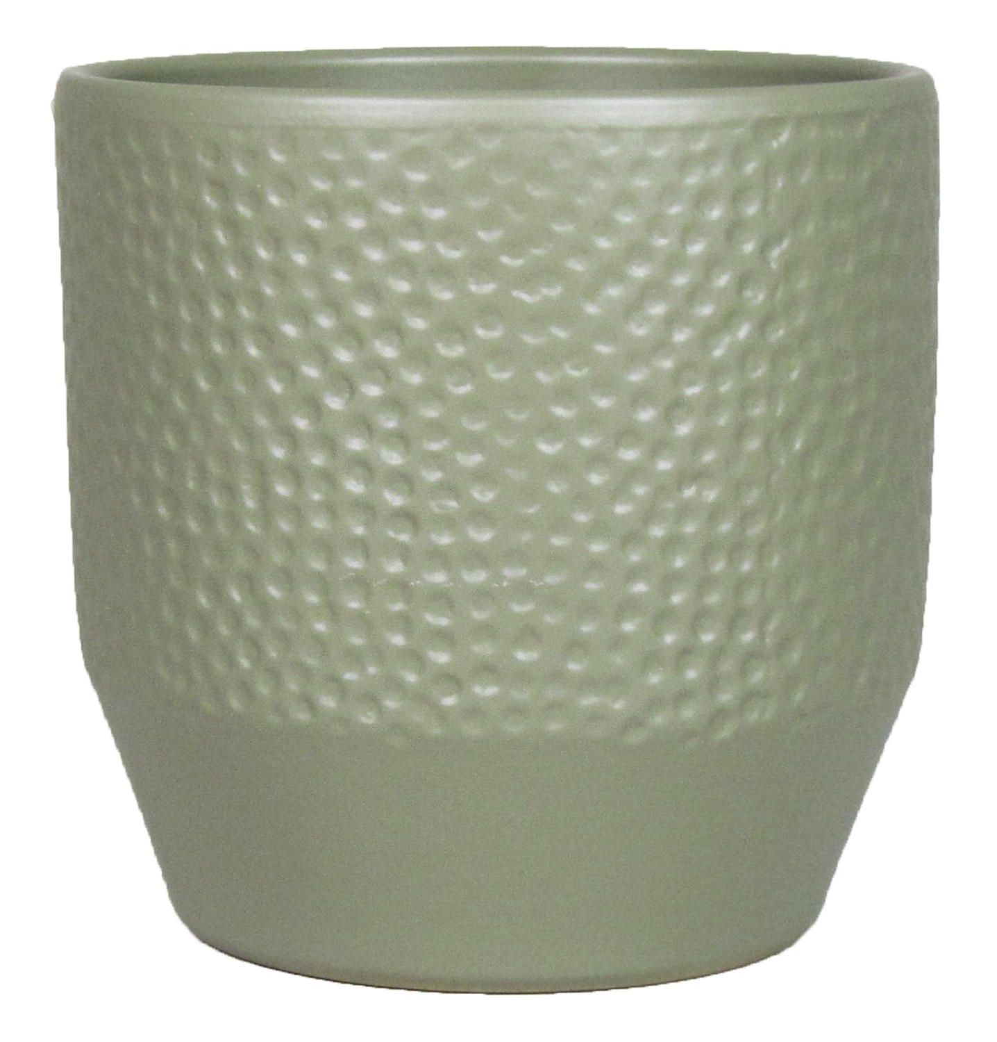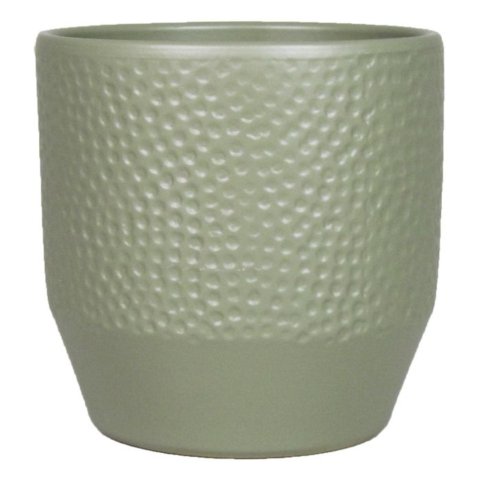 Macetero de cerámica BIHAM, patrón martillado, verde oliva mate, 13,2 cm, Ø 13,5 cm