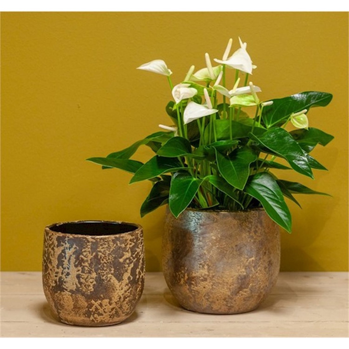 Macetero de cerámica de estilo retro MAGO, con aspecto lavado, dorada, 14cm, Ø16cm