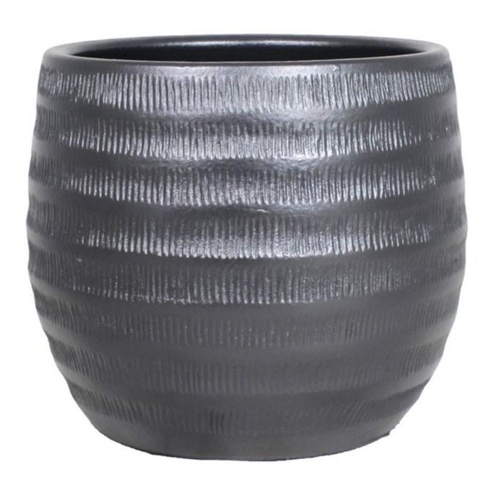 Macetero de cerámica TIAM con estrías, negro-mate, 31cm, Ø34cm