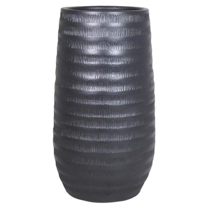 Macetero de cerámica TIAM con estrías, negro-mate, 40cm, Ø22cm