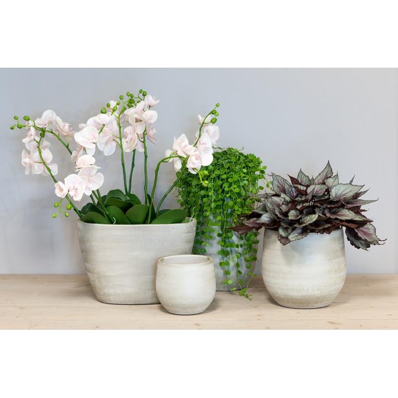 Macetero DELTA con ranuras, cerámica, gris claro-blanco, 33 cm, Ø 36 cm