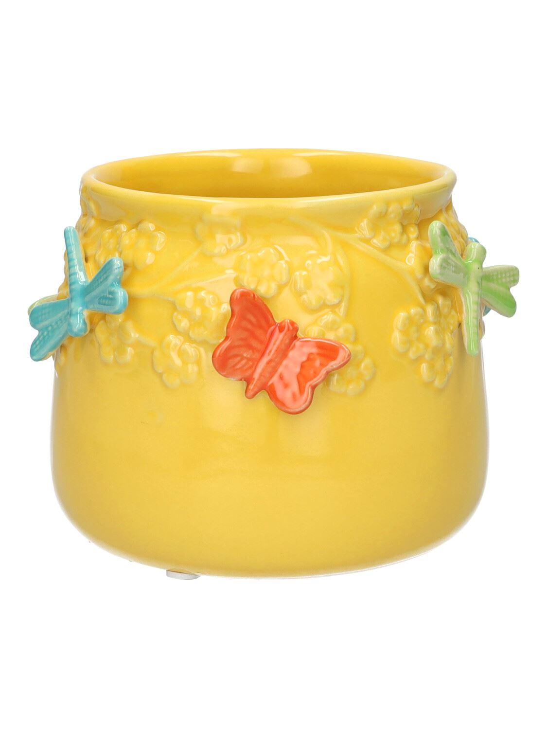 Macetero KIMANA de cerámica, mariposas y libélulas en 3D, amarillo-naranja-azul-verde, 11 cm, Ø 13,5 cm