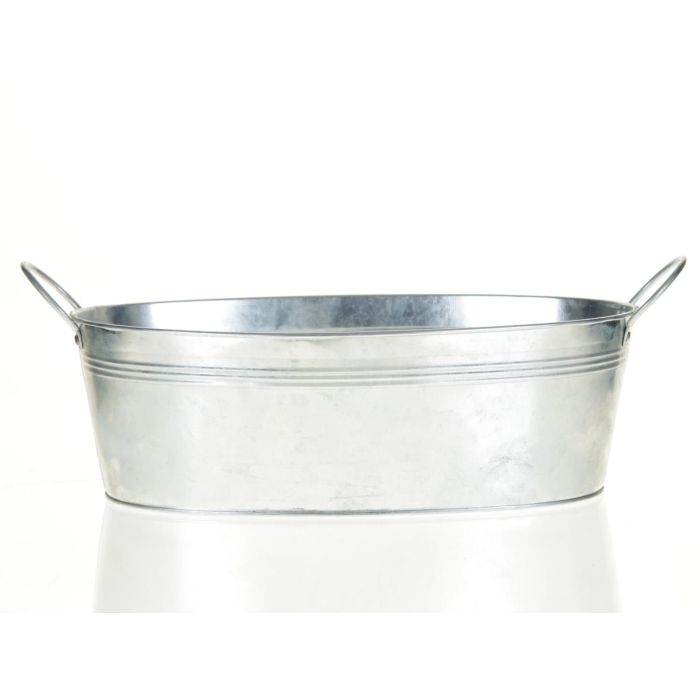 Macetero ovalado GERVASIA con asa, zinc, plateado, 25 x 13 x 12 cm