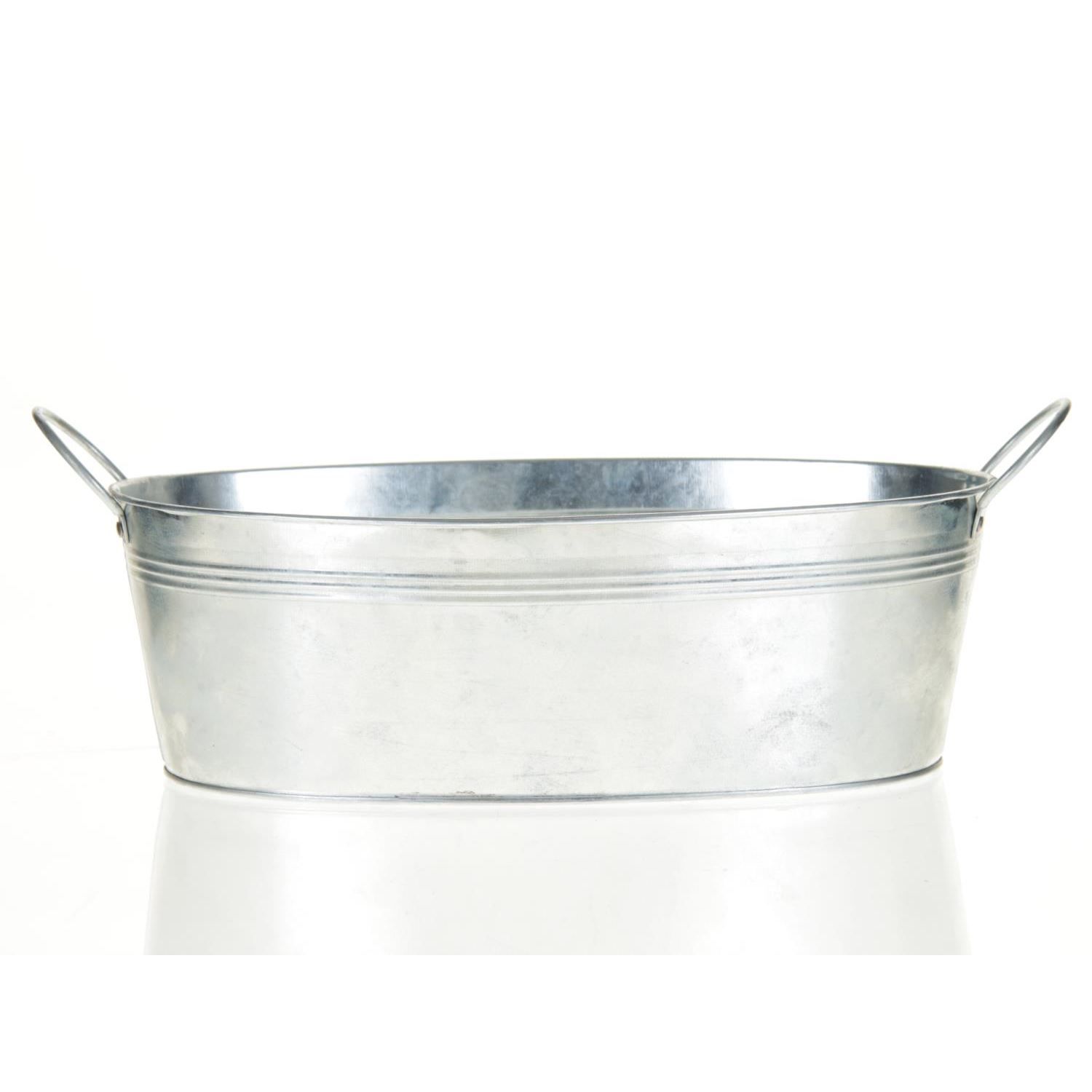 Macetero ovalado GERVASIA con asa, zinc, plateado, 29 x 16 x 12 cm