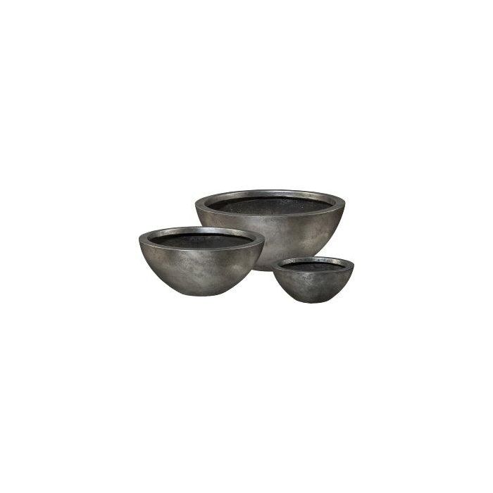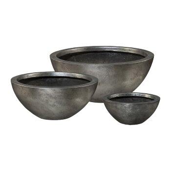 Macetero redondo NARUKO, entre otros, para columnas con pedestal, 3 unidades, fibra de vidrio, plateado, 30 x 13 cm, 46 x 20 cm, 55 x 23,5 cm