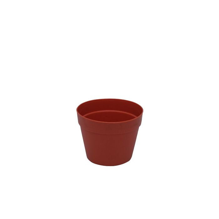 Sobrio macetero de plástico con una altura de 13,5 cm. La maceta de color terracota és ideal para todo tipo de plantas artificiales.