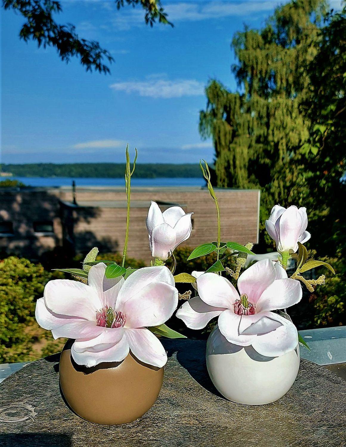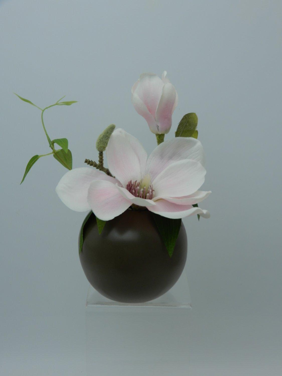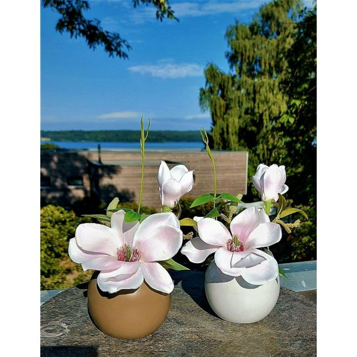 Magnolia artificial FEMI en maceta de cerámica beige, rosa pálido, 20 cm, Ø 17 cm