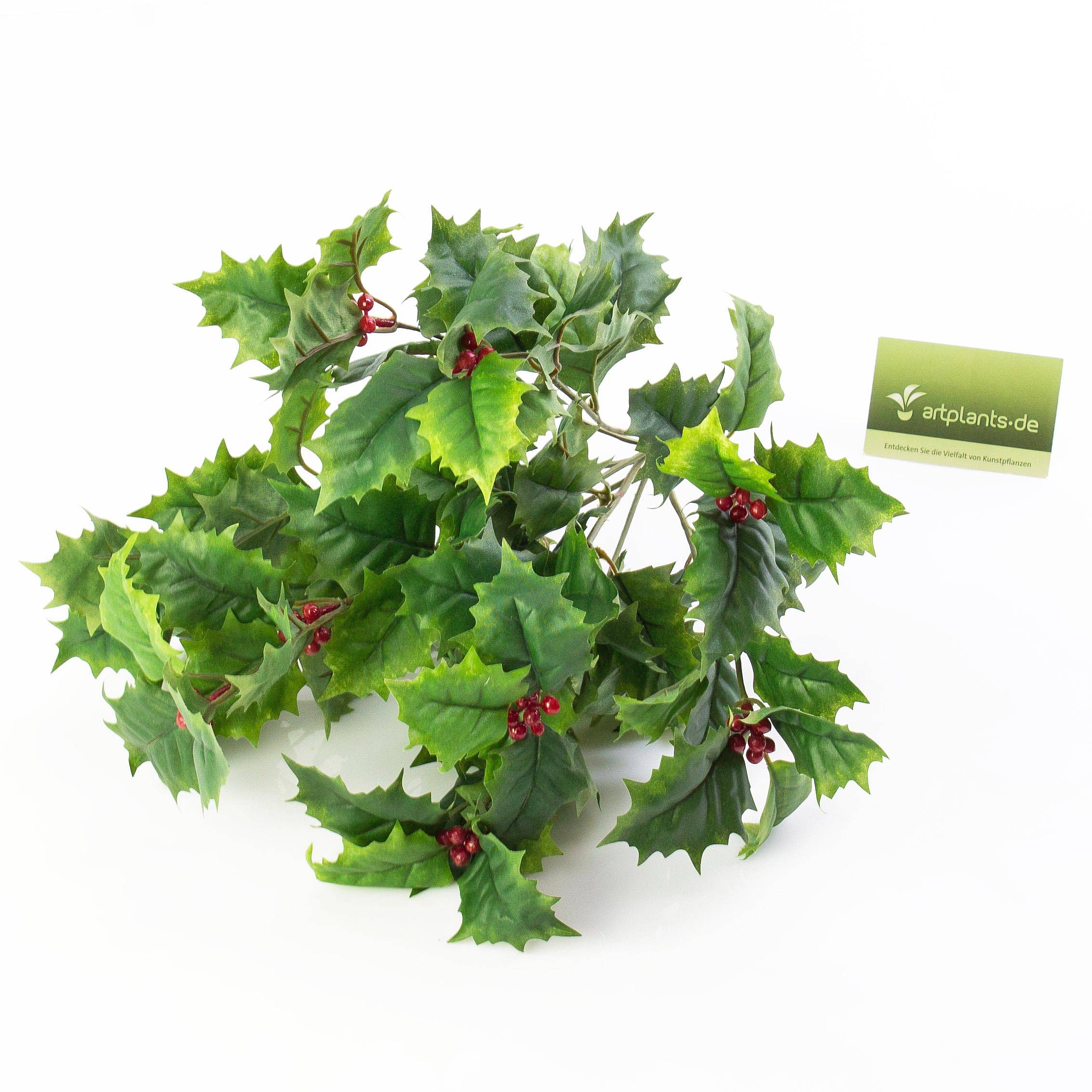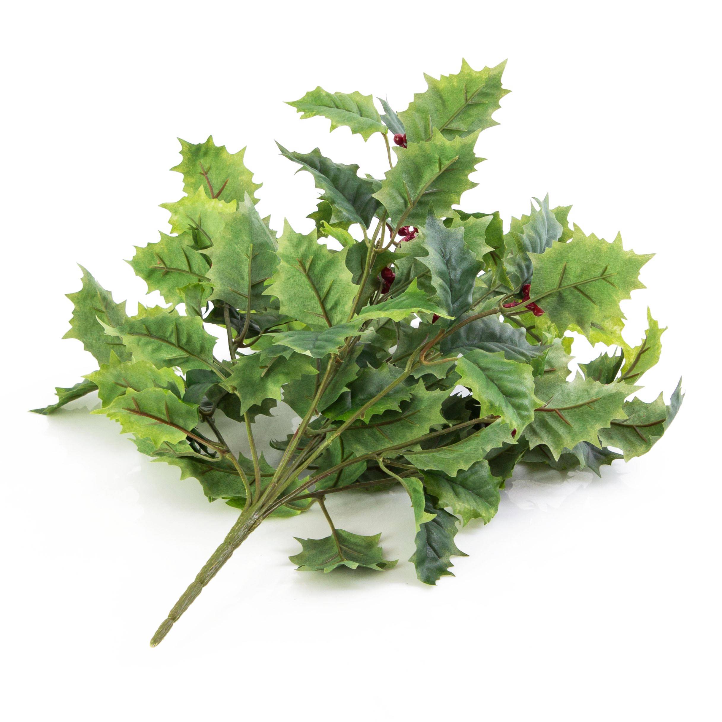 Mata de acebo de plástico IDRIS, en vara de fijación, verde, 45cm