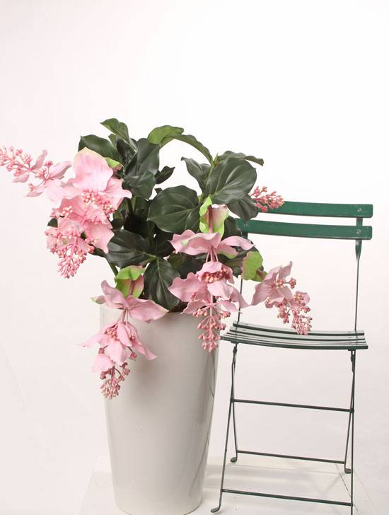 - Flor decorativa de medinilla en, por ejemplo, un hotel, grandes almacenes, mesones, tiendas de muebles, y más.