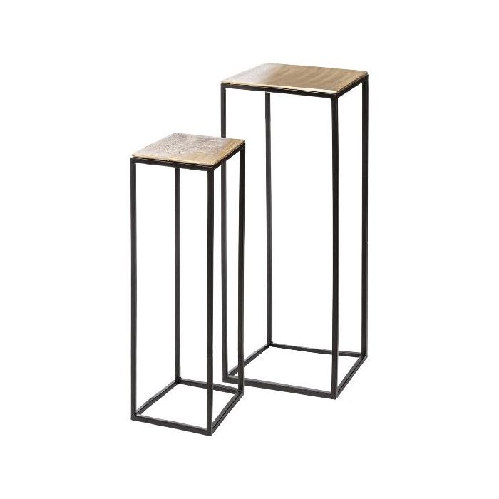 Mesa para flores de metal WAKANDA, 2 unidades, negro-marrón, 22 x 22 x 60 cm, 25 x 25 x 80 cm