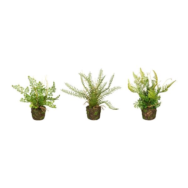 Mezcla de helechos artificiales FUNGAR, helecho culantrillo, helecho espada, helecho escudo, 3 unidades, cepellón, verde, 22 cm, Ø 25 cm