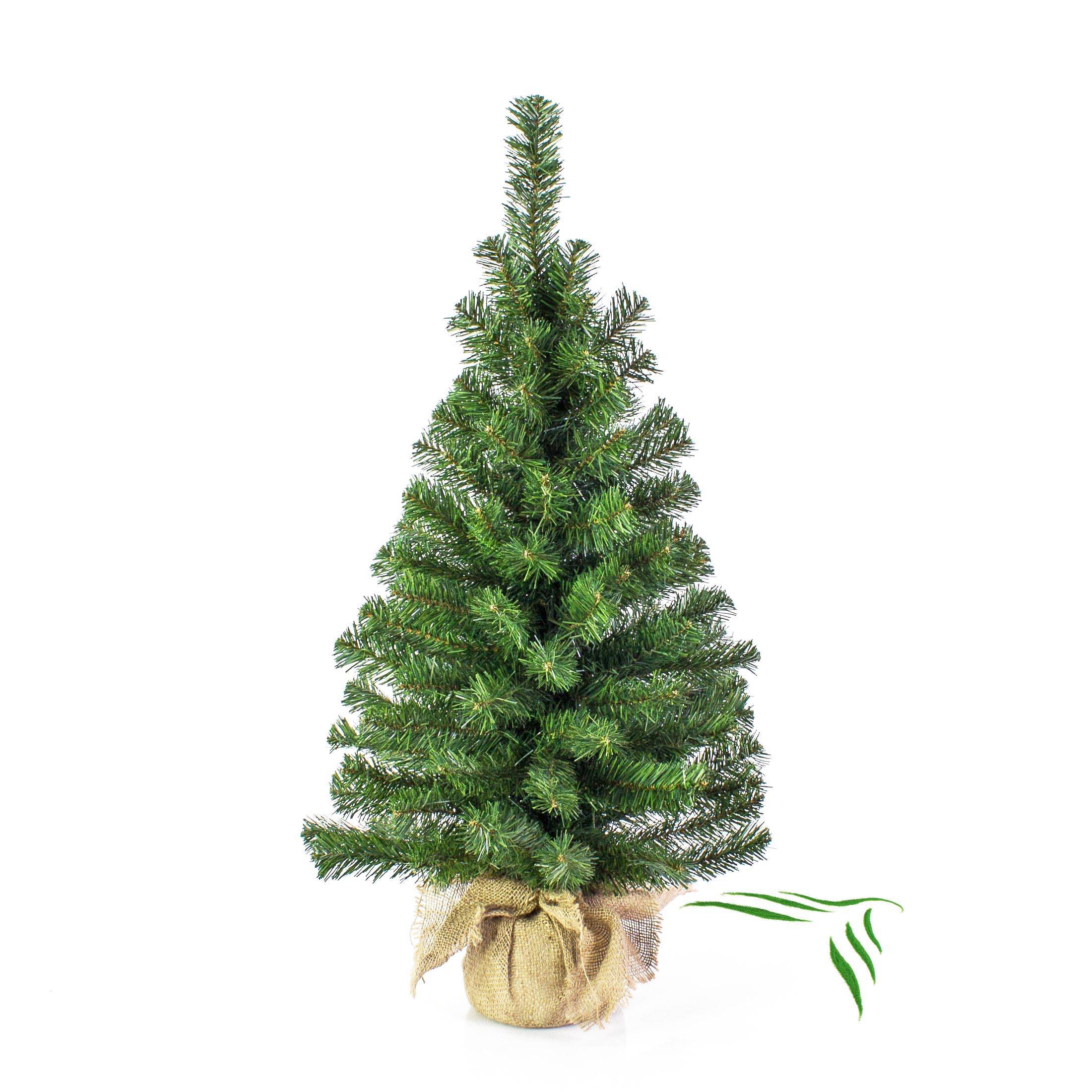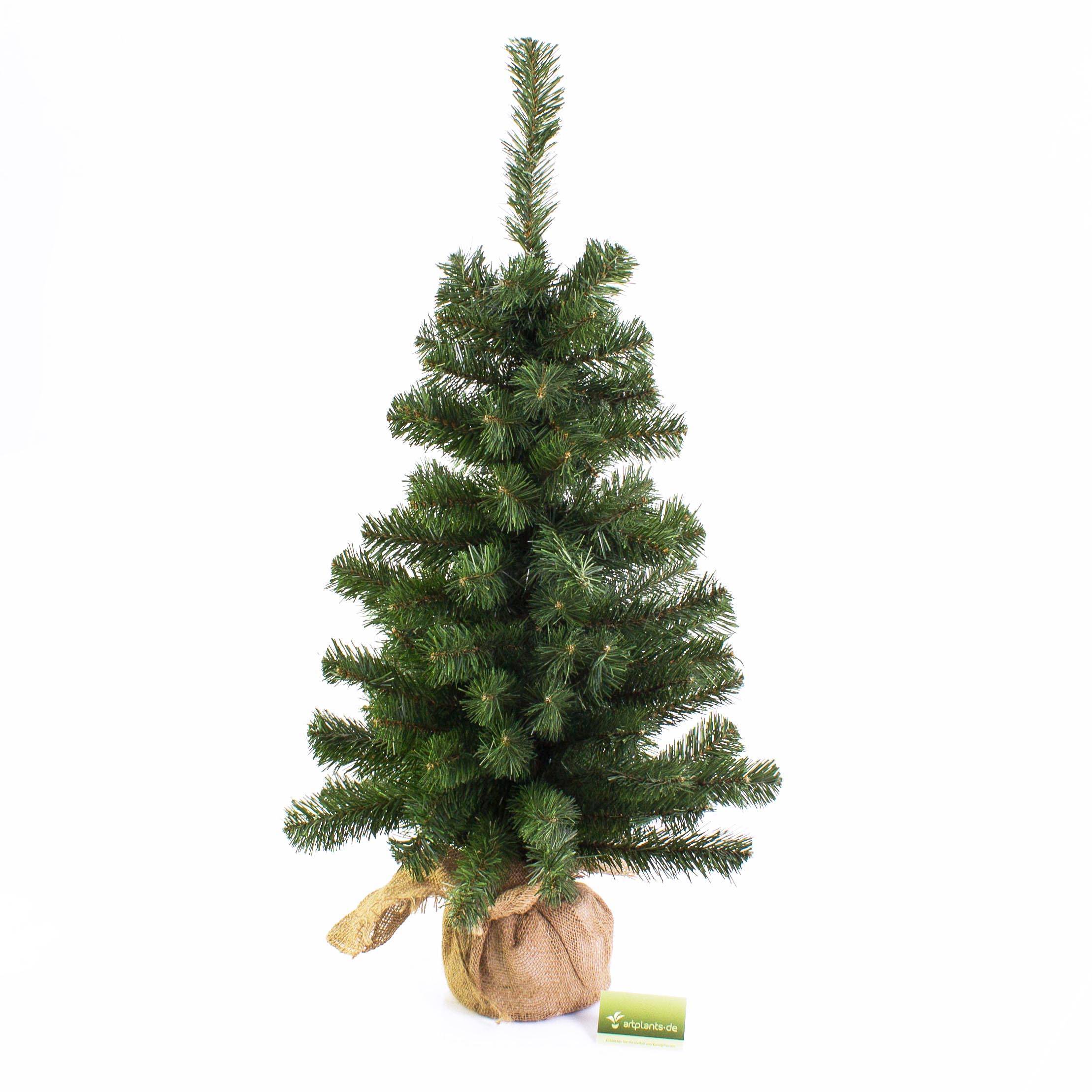 Mini abeto VARSOVIA de la NUEVA colección de artplants con una altura aproximada de 90 cm y un diámetro aproximado de 50 cm. Se entrega en saco de yute. Las ramas con sus respectivos ápices se encuentran bien fijadas al tronco para una sencilla y cómoda colocación en el lugar deseado.
