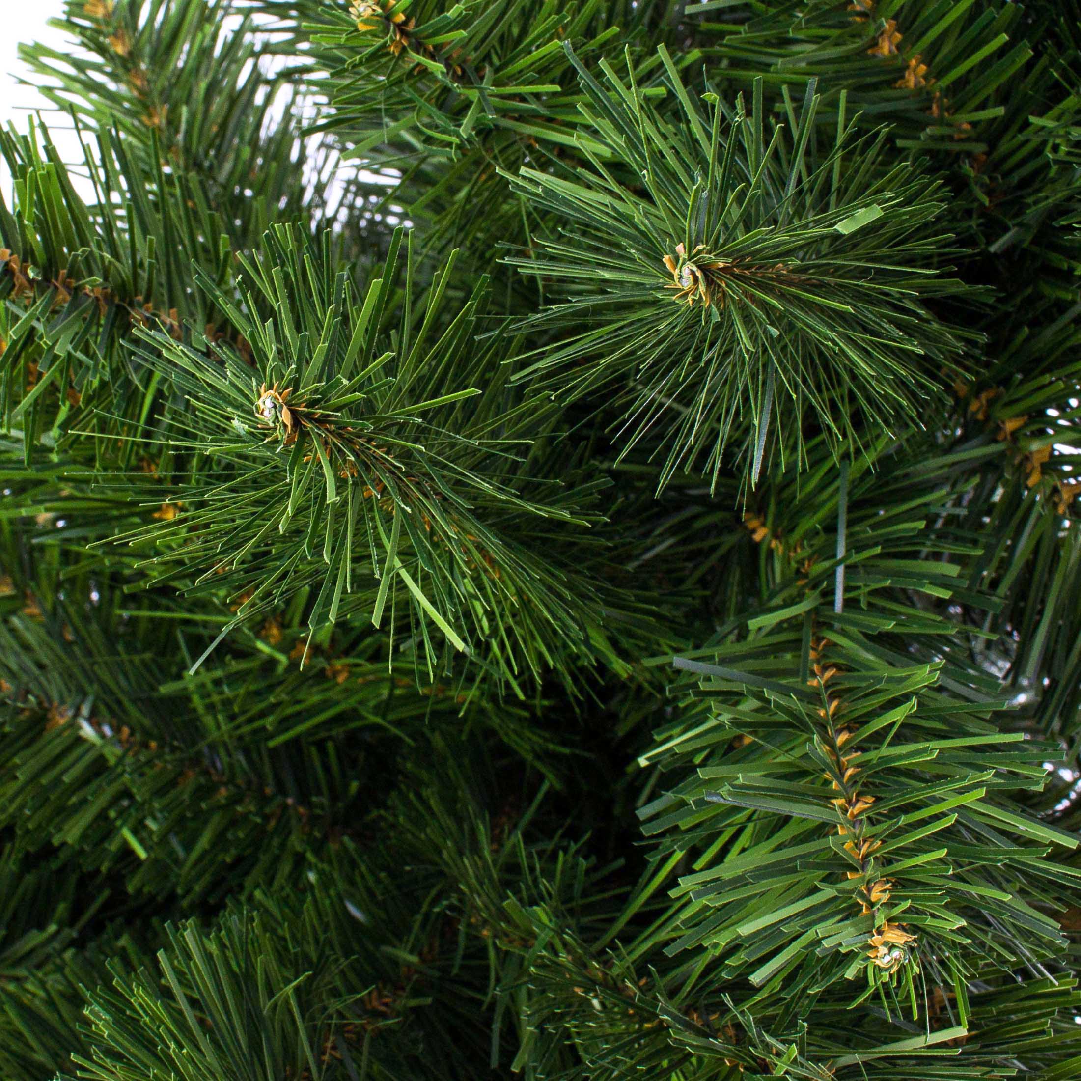 - Con cerca de 115 ramas elaboradas con material de PVC de alta calidad en color verde oscuro, los ápices de textil miden en torno a los 3-4 cm de largo, las ramas se encuentran establemente fijadas al tronco principal
