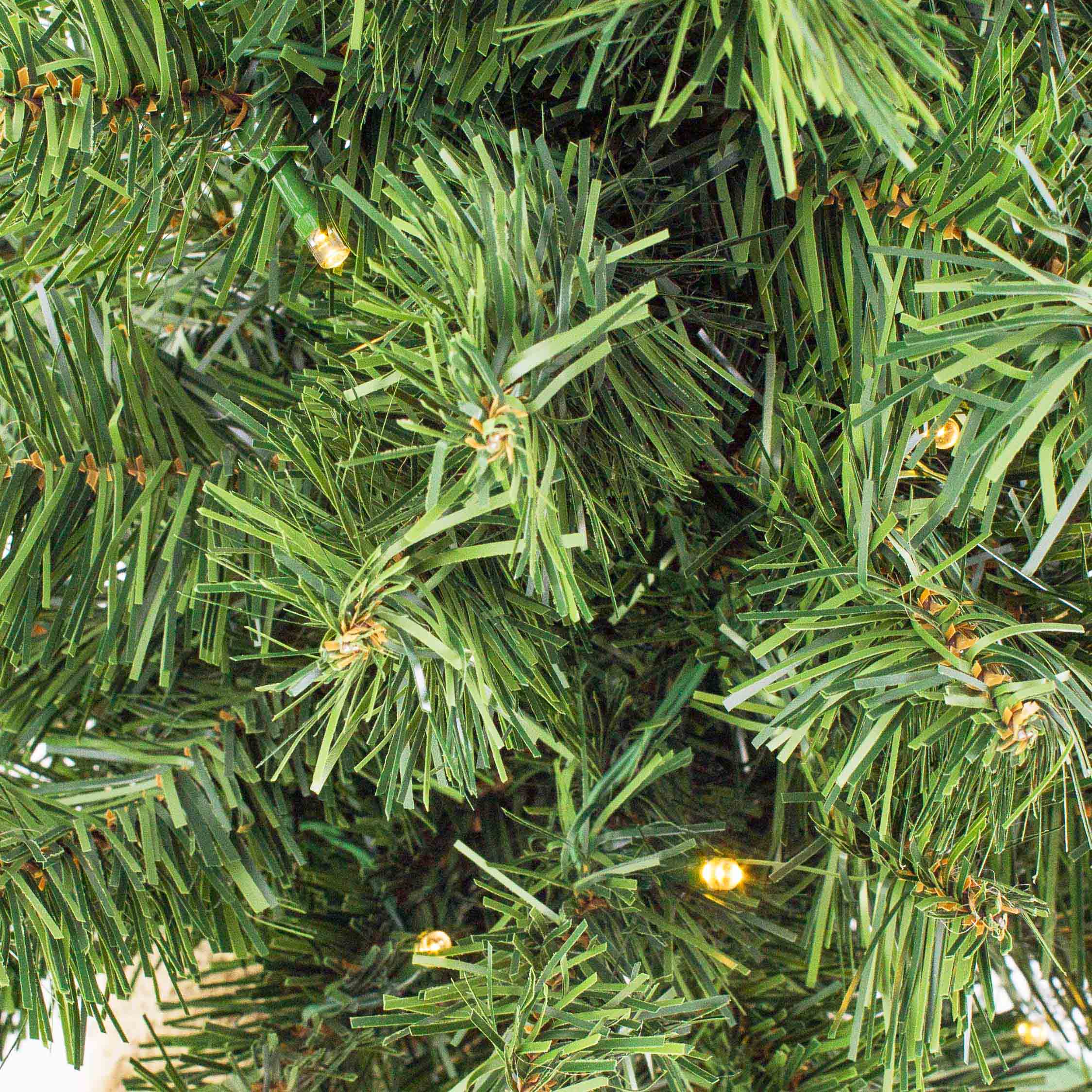 - Con cerca de 70 ramas elaboradas con material de PVC de alta calidad en color verde oscuro, los ápices de textil miden aprox. 3-4 cm de largo, las ramas están fijamente conectadas al tronco principal
