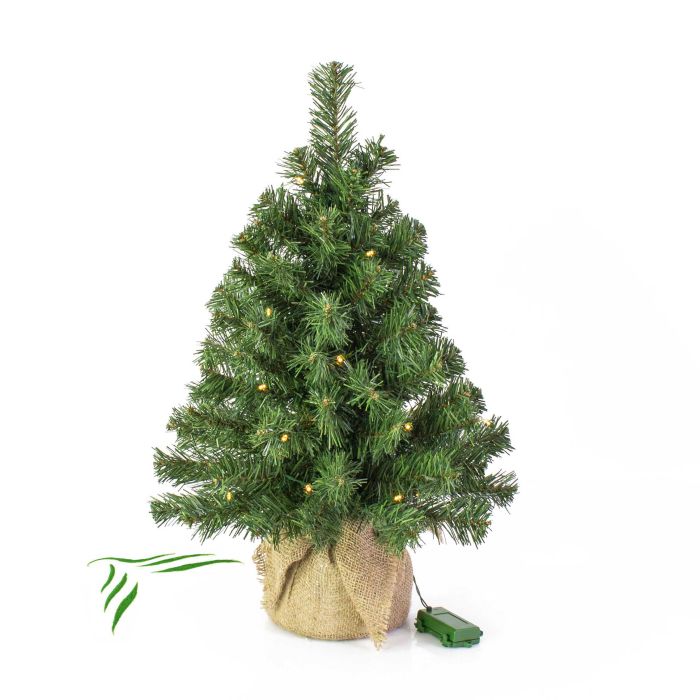 Mini árbol Navidad artificial WARSCHAU, saco yute , LEDs, 60cm, Ø40cm