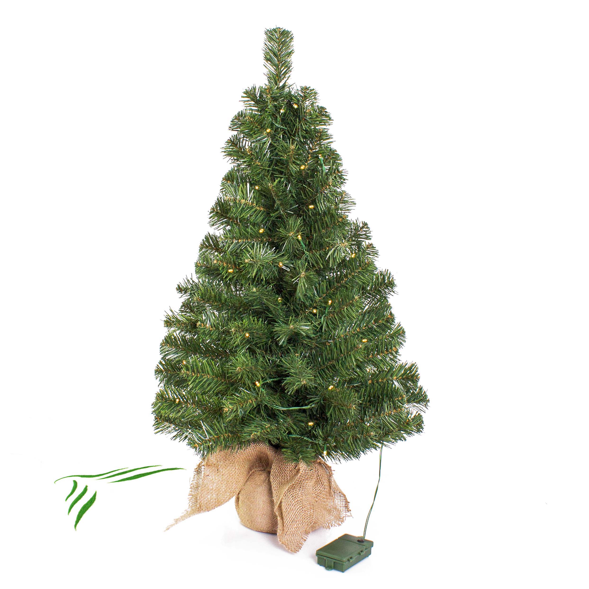 Mini árbol Navidad artificial WARSCHAU, saco yute , LEDs, 90cm, Ø50cm