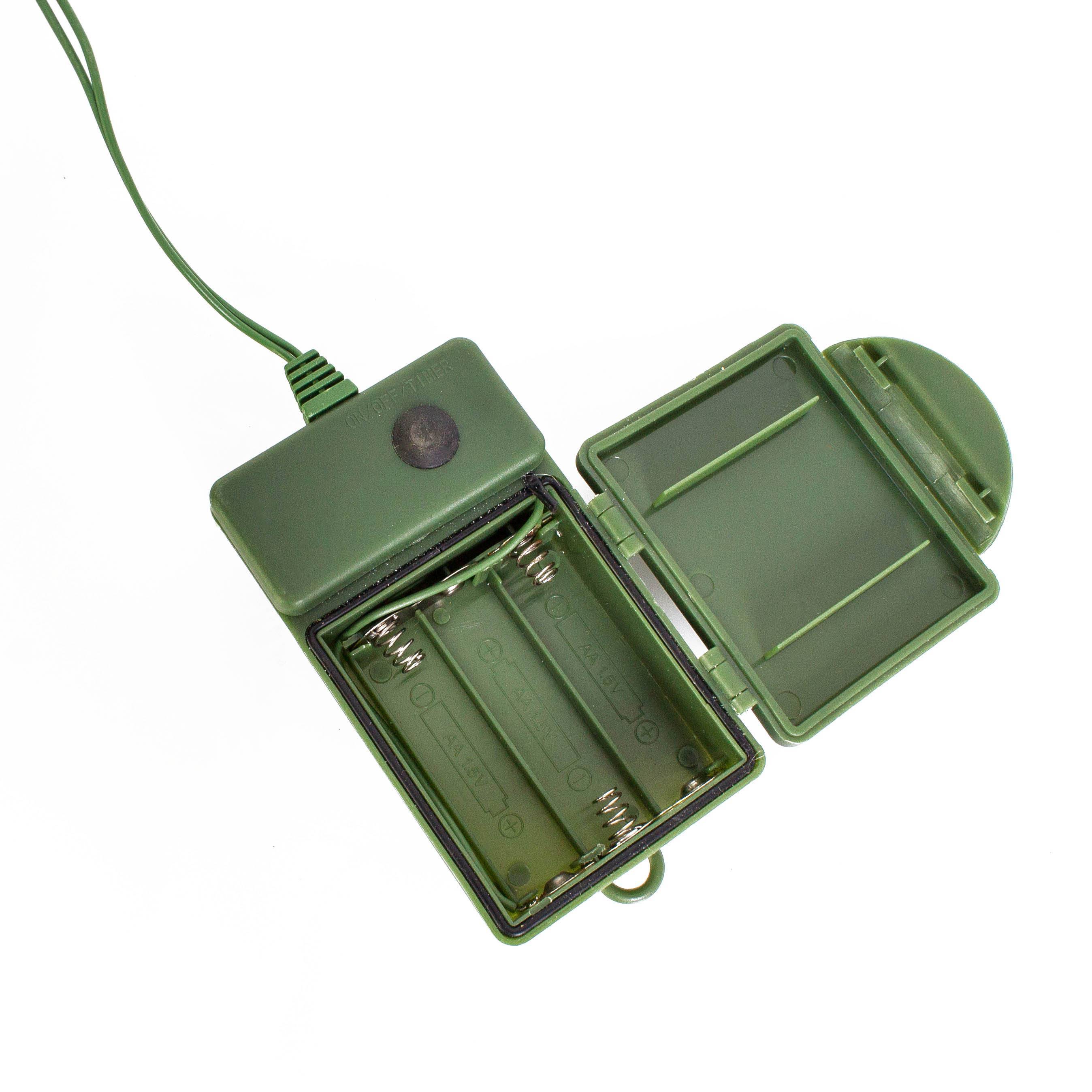 - Con luces LED integradas (25 LEDs, con bombillas de repuesto), fuente de alimentación con pilas AA, 5 modos de luz (encendido, parpadeante, ascendente, permanente, apagado)