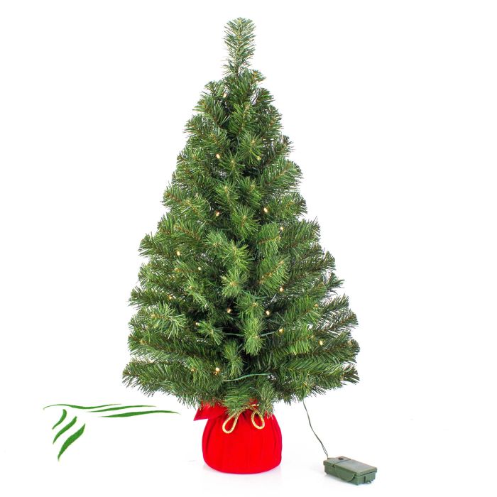 Mini árbol de navidad WARSCHAU con iluminación LED de la nueva colección de artplants. El árbol posee una altura de 90 cm y un diámetro de aproximadamente 50 cm. Se entrega en un saquito de color rojo. Las ramas de acículas se encuentran bien fijadas a la base y permiten una rápida colocación del árbol en el lugar deseado.