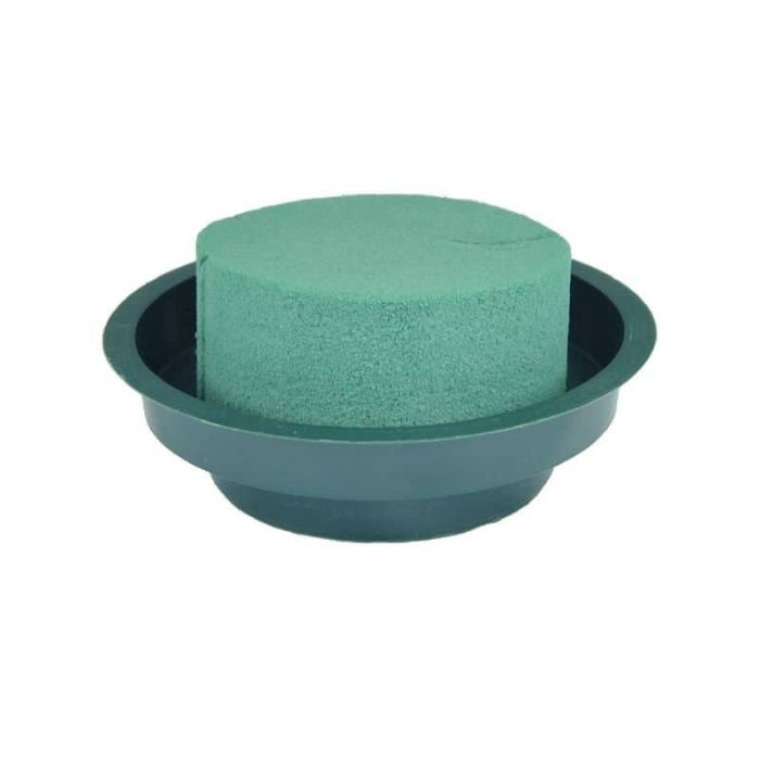 OASIS® Esponja ideal para flores en bandeja de plástico, verde, 5 cm, Ø 12 cm