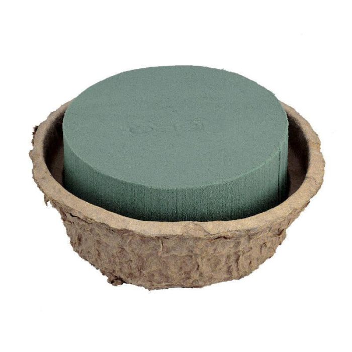 OASIS® Esponja redonda húmeda para arreglos florales de para arreglos florales, recipiente de papel reciclado Biolit, verde, 6 cm, Ø 14 cm