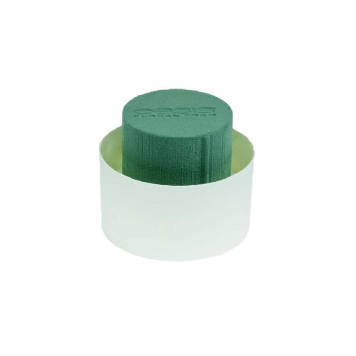 OASIS® Espuma húmeda Cilindro en bandeja de compuesto de papel, verde-crema, 7 cm, Ø 11 cm