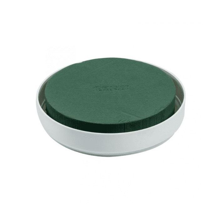 OASIS® Espuma húmeda redonda para arreglos florales, en bandeja de plástico, verde-blanca, 5 cm, Ø 30 cm
