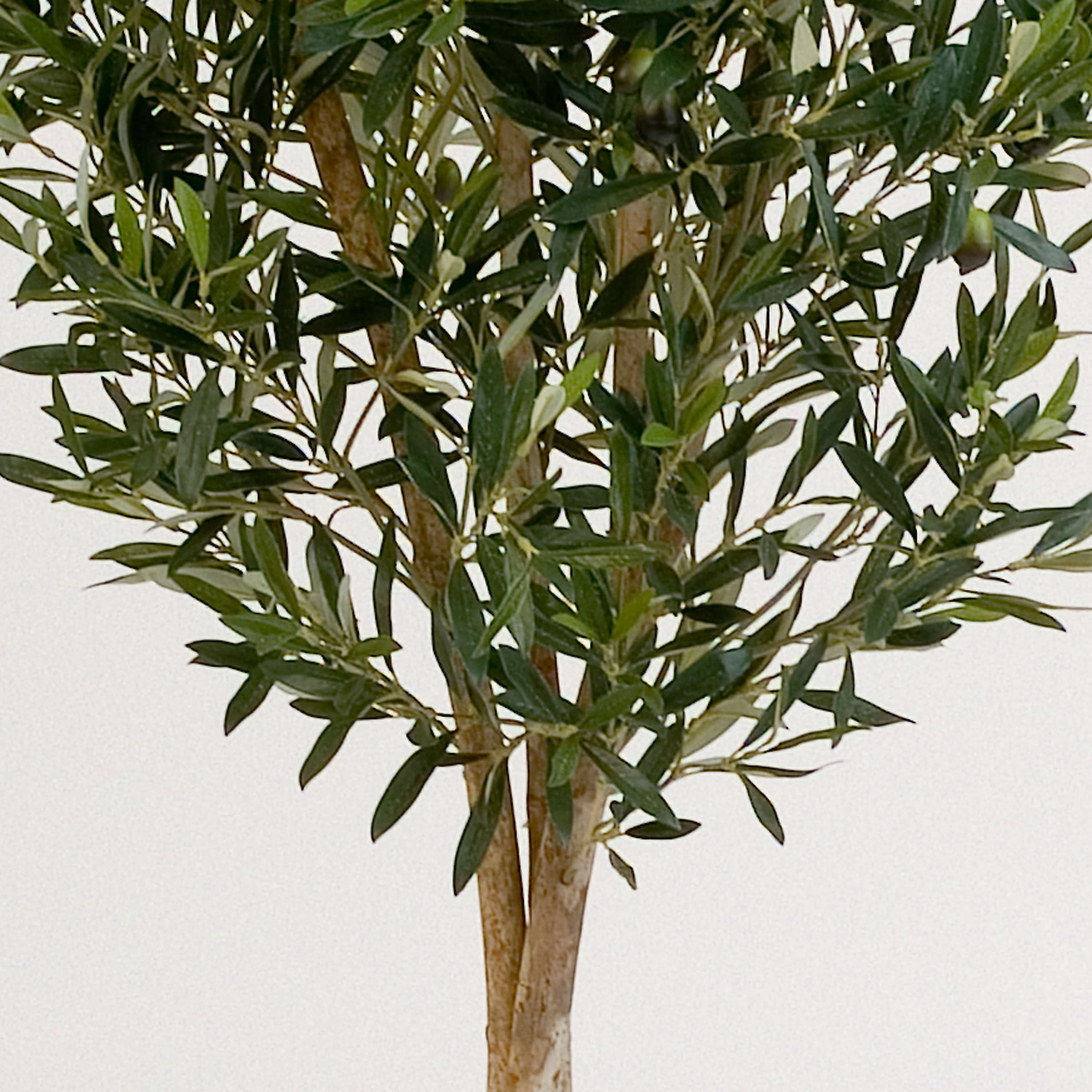 Decorativo olivo artificial en tiesto con cerca de 1980 hojas y una altura total aproximada de 120 cm.