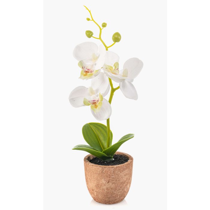 Orquídea artificial Phalaenopsis LEONISA en maceta de terracota, blanca, 20 cm
