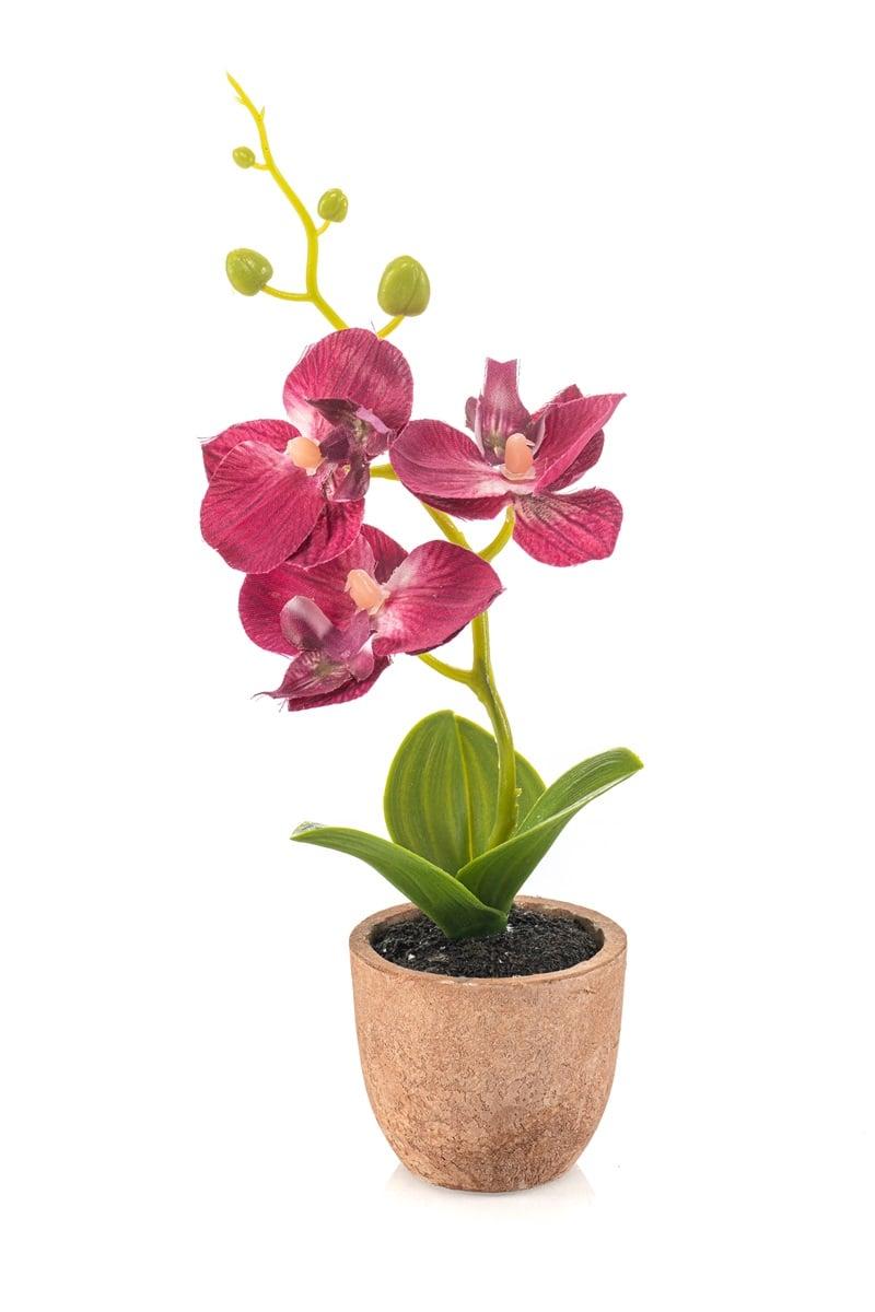 Orquídea artificial Phalaenopsis LEONISA en maceta de terracota, fucsia, 20 cm