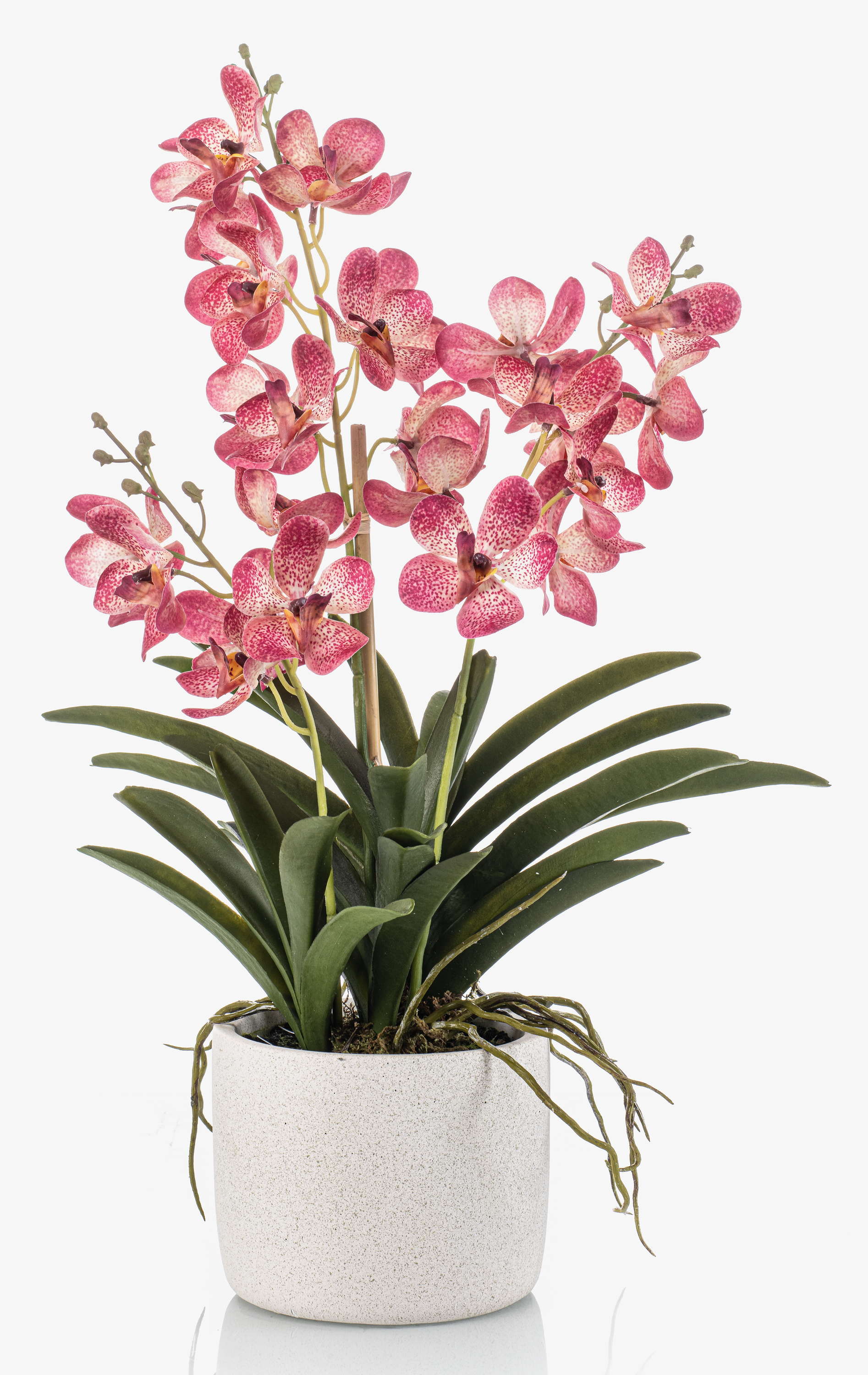 Orquídea artificial Vanda PAVRA en maceta de cerámica, raíces, rosa-blanco, 60 cm