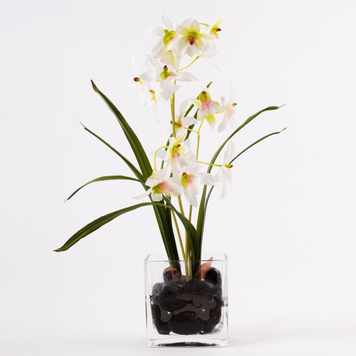 Orquídea Dendrobium artificial ZUZA en vidrio decorativo, blanco-verde, 35cm