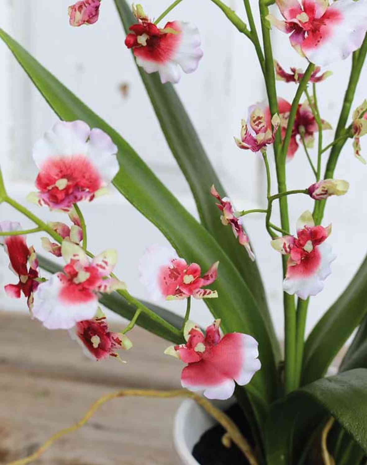 Orquídea Oncidium artificial YOSEPHIN en maceta de arcilla, blanco-rojo, 70cm